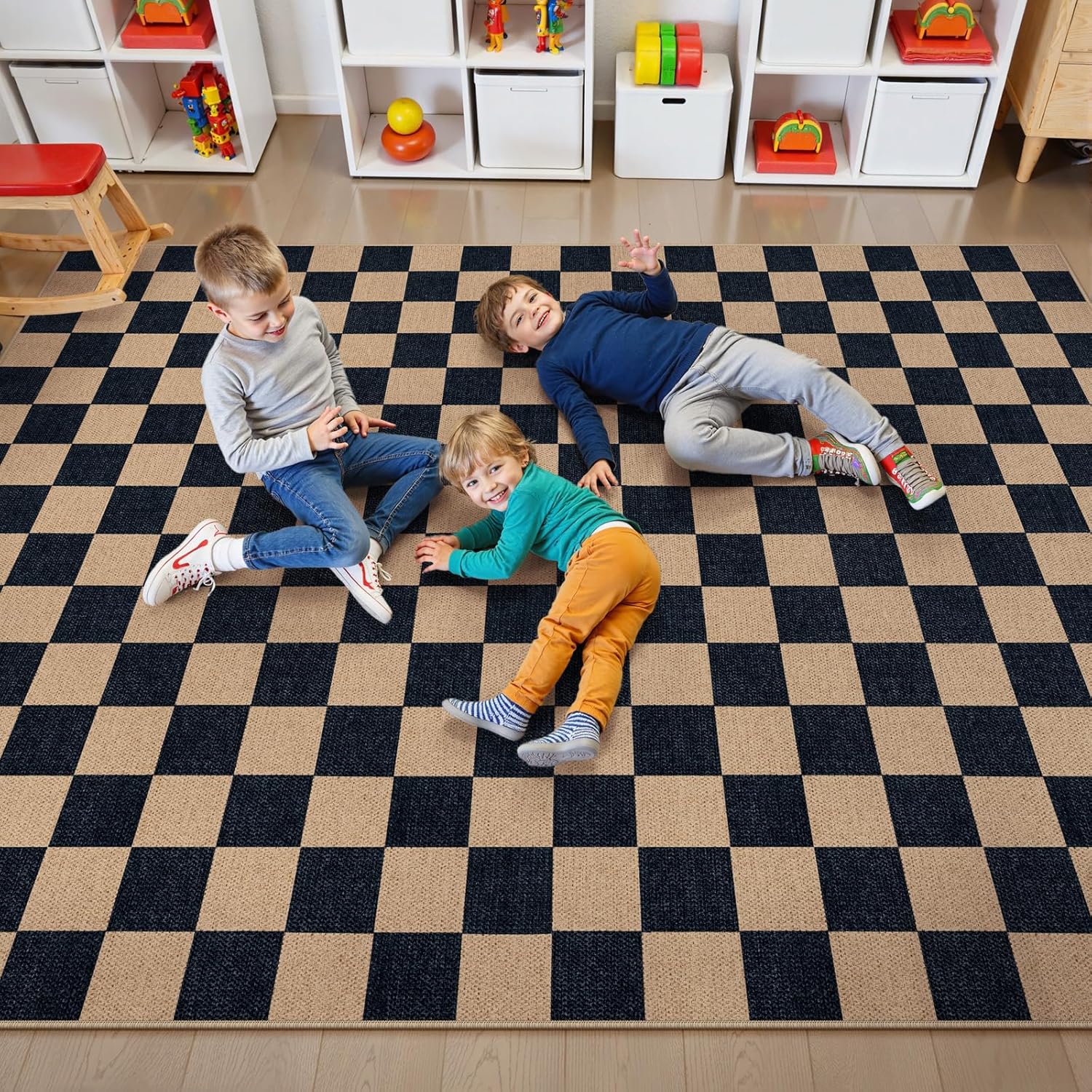 - Functional Rug: Checkered rug lends a sense of simplicity and comfort to your patio, entryway, kitchen, bedroom, camping, backyard, RV, front door, dining room, sunroom, deck, courtyard, or more indoor/outdoor rooms, creating a warm appearance