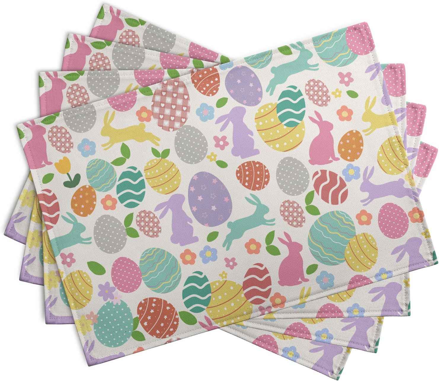 - TABLE DECORATION: Spring easter farmhouse table placemat feature high-definition printing technology for crisp, clear patterns and vibrant colors; rectangle placemats with a beautiful eggs rabbits pattern; unique and eye-catching seasonal patterns add charm to spring easter placemats, creating a festive atmosphere for your party