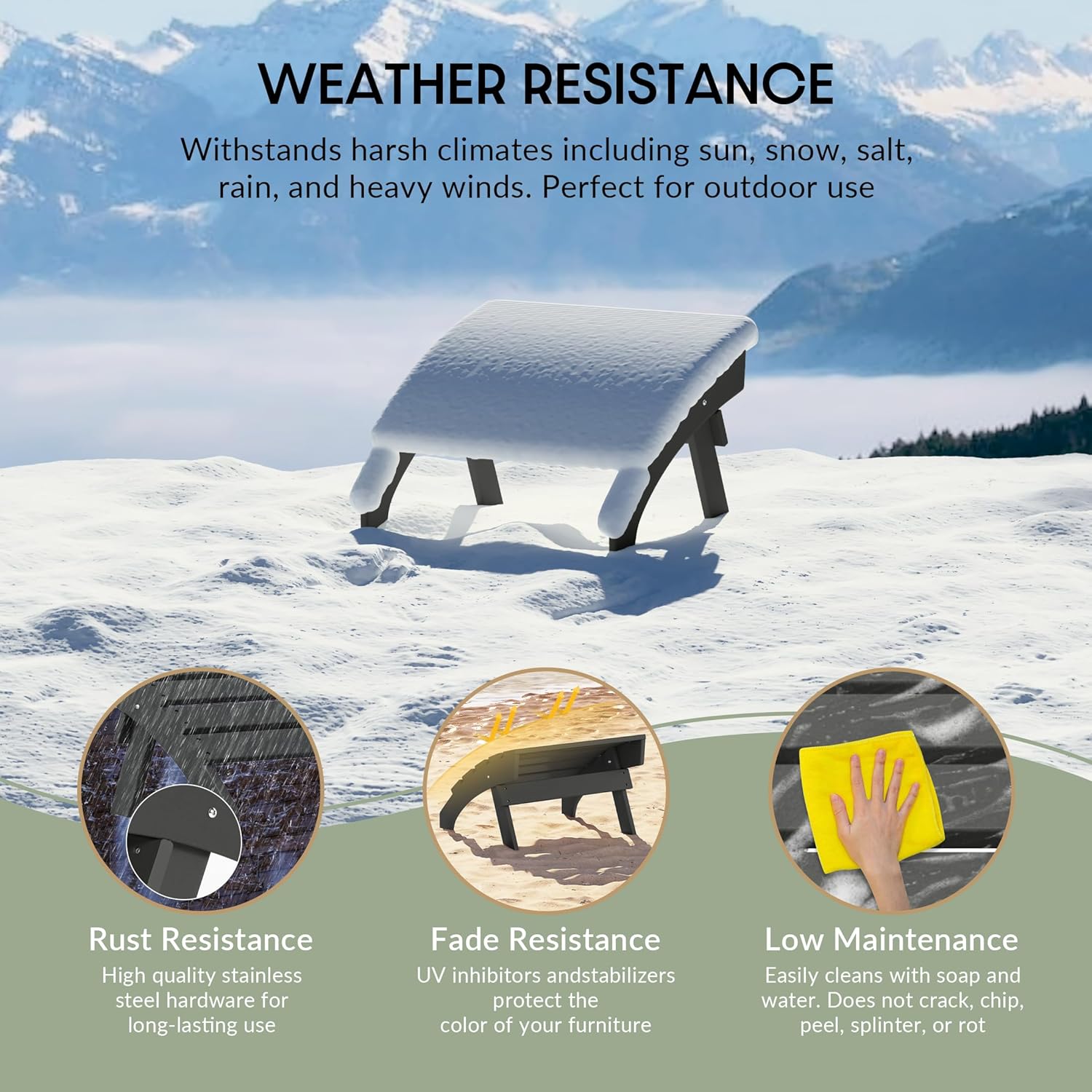 - All Weather Resistant: This Adirondack foot rest are made of HDPE plastic, its weather resistant and UV fade resistant material can withstand in various enviromental pressure and not easy to dent, crack , peel or rot as wood.
