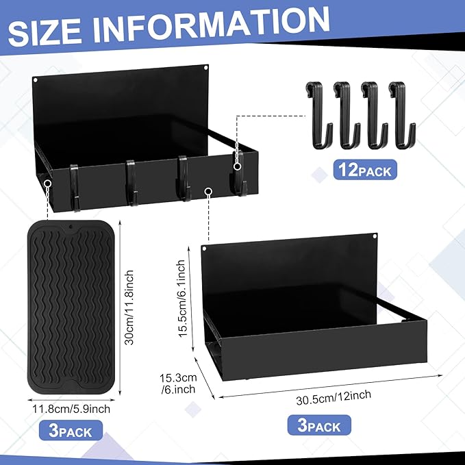 - Included Components : 12 x Hanging hooks, 3 x Black non slip pads, 3 x Magnetic tool box trays