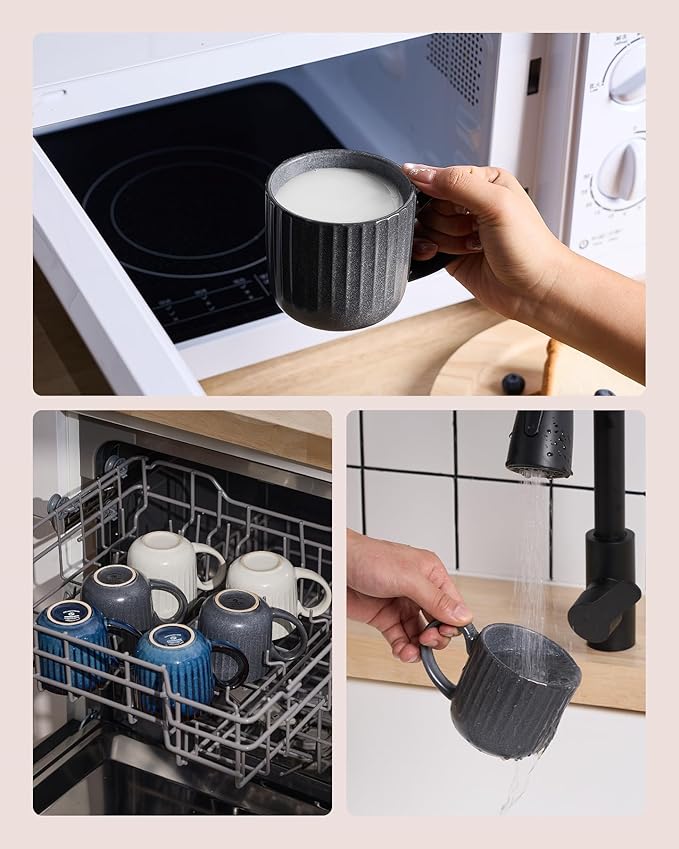 - Dishwasher and Microwave Safe: Coffee cups ceramic are made of quality stoneware and have been tested for safety in both environments by internationally accredited laboratories. The smooth glaze avoids coffee stains and is easy to clean