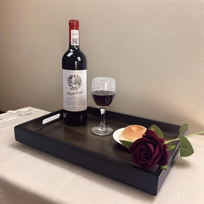 - Our bamboo tray is made of solid wood. Although it is made of bamboo, we give it black walnut color and texture to make it look different from other tray. It is very suitable for breakfast, lunch, dinner, bread, vegetables, bread, fruits, appetizers, desserts. It is also the best choice to serve food to friends at parties and bars. By using them, you will receive a lot of praise!