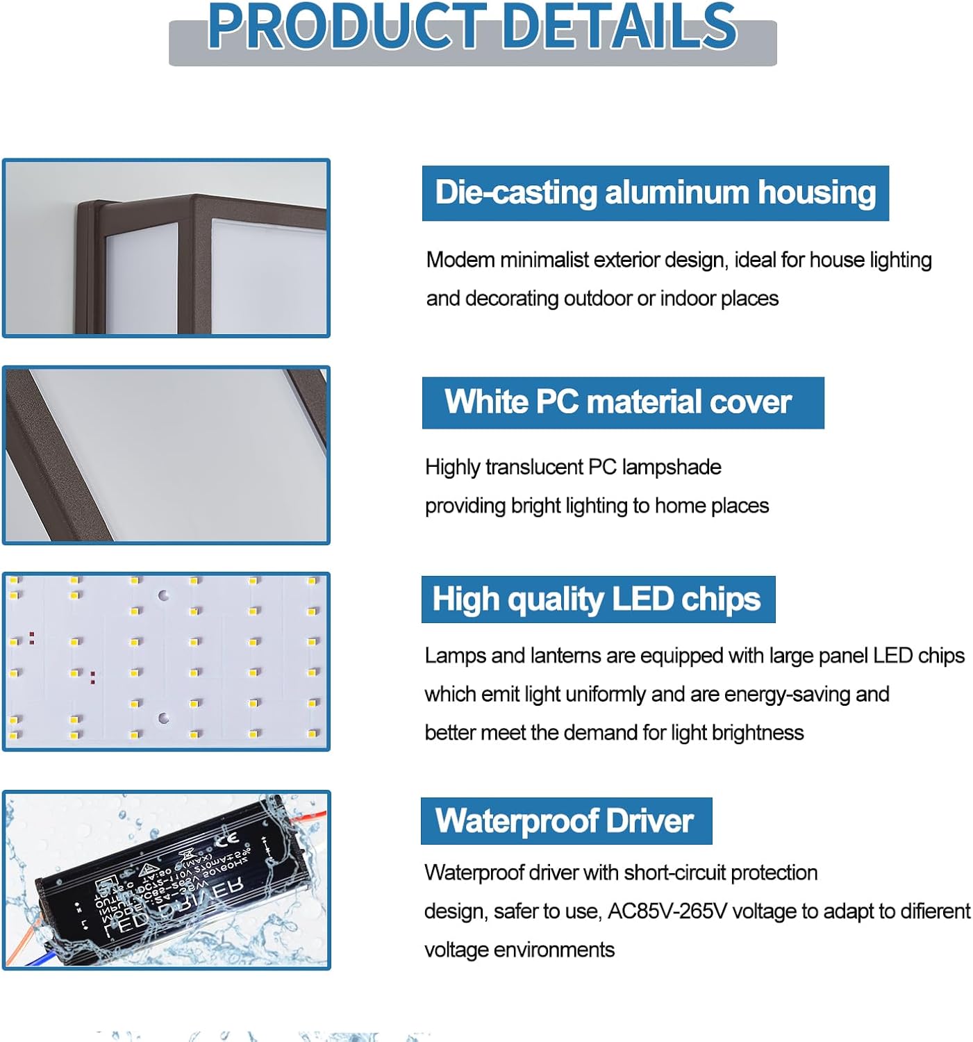 - Safe and Energy Saving:Exterior wall light total power:30W, high quality LED chip, 3000K warm light, (cannot be dimmable), beam soft uniform, low energy consumption;waterproof strip and waterproof driver: short circuit protection design, safer to use;providing enough lighting for your home