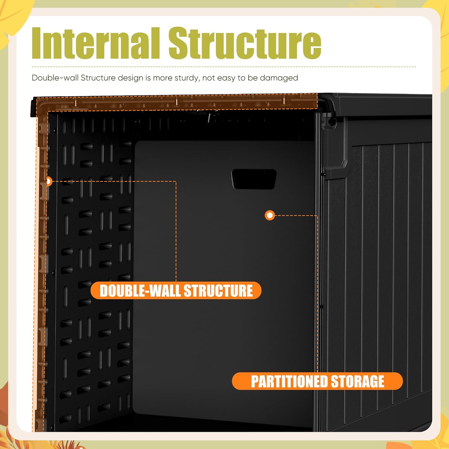 - Partitioned Storage: The Deck Storage Box has a 240-gallon capacity for storing anything you need, and with the partitioned storage design you can choose left or right side for partitioned storage as needed, making it easier to access your items