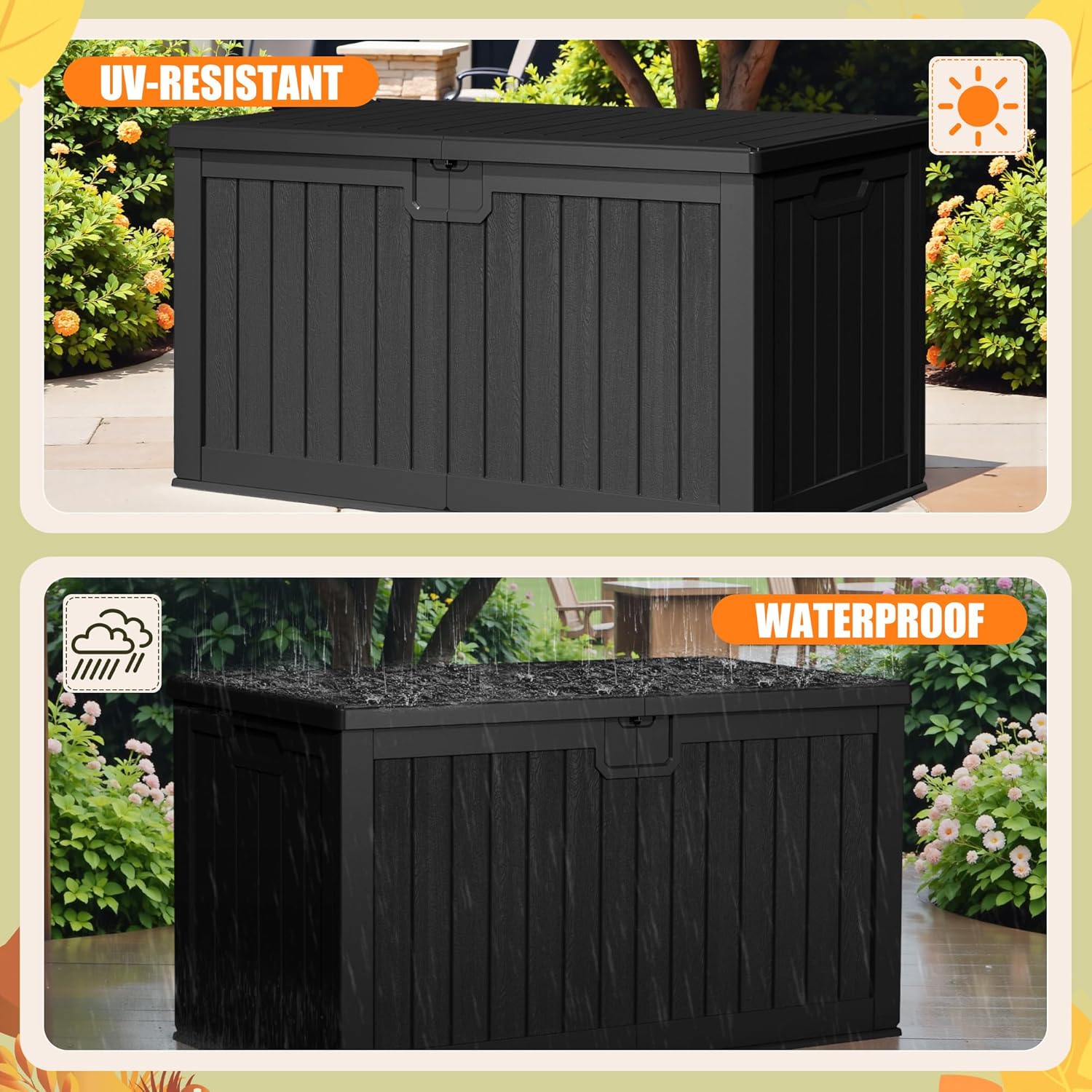 - Duty: This outdoor storage box can be used as extra seating for outdoor gather and can hold up to 600 pounds