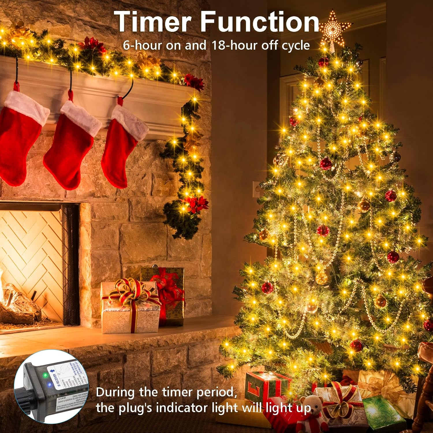 - [Multi-function Remote] 8 Modes - Combination, In wave, Sequential, Slo glo, Chasing/Flash, Slow fade, Twinkle/Flash, Steady on. Timer - 6 hours on and 18 hours off. Dimmable, you could adjust the brightness of the string lights to meet your needs