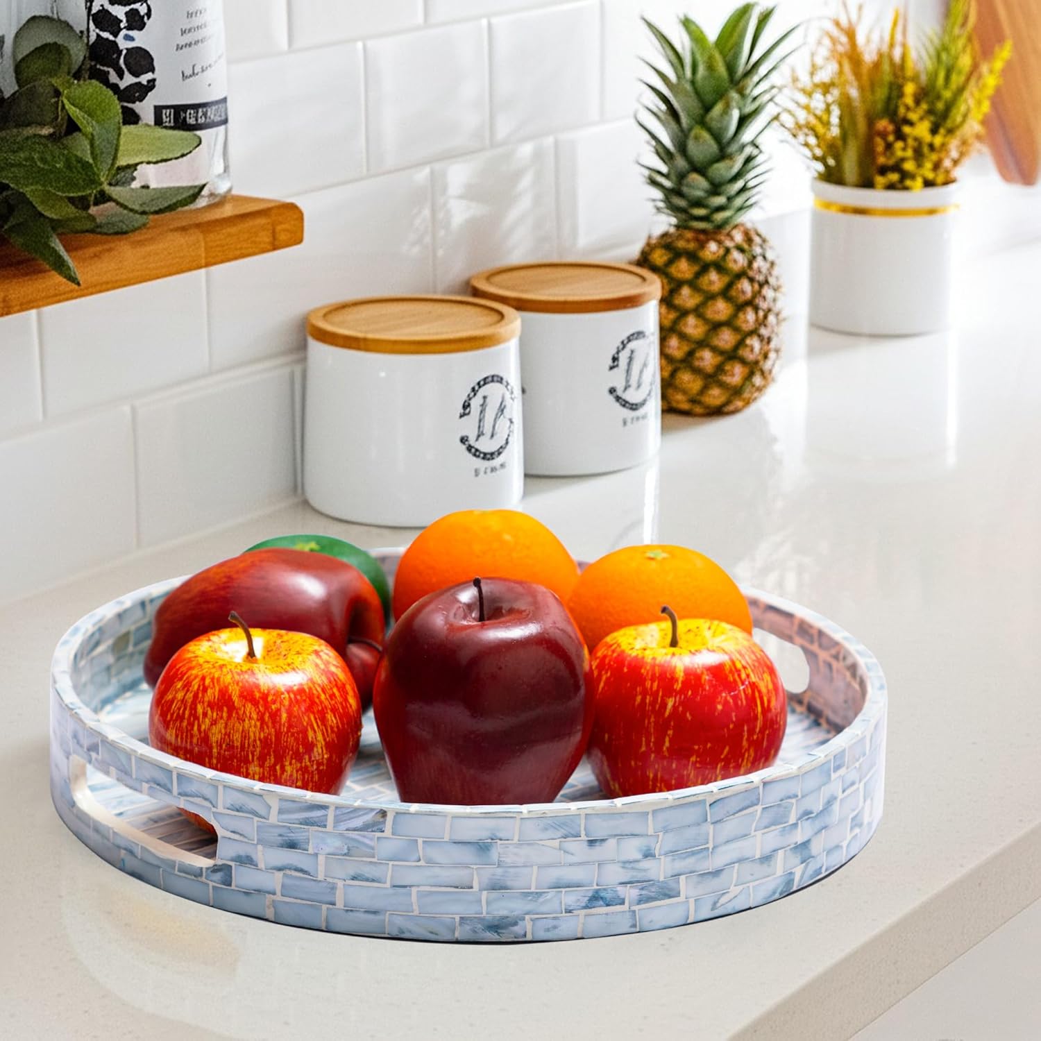 - STYLISH FLORAL TRAYS with the great workmanship by Vietnamese artisans, flawlessly finished with strong wood core and blue floral pattern well-sorted MOTHER OF PEARL SHELLS inlayed on the surface creates an elegant handmade centerpiece to brighten your decoration, best matches any beach/coastal nauticaNew Home Gifts For Homel theme.