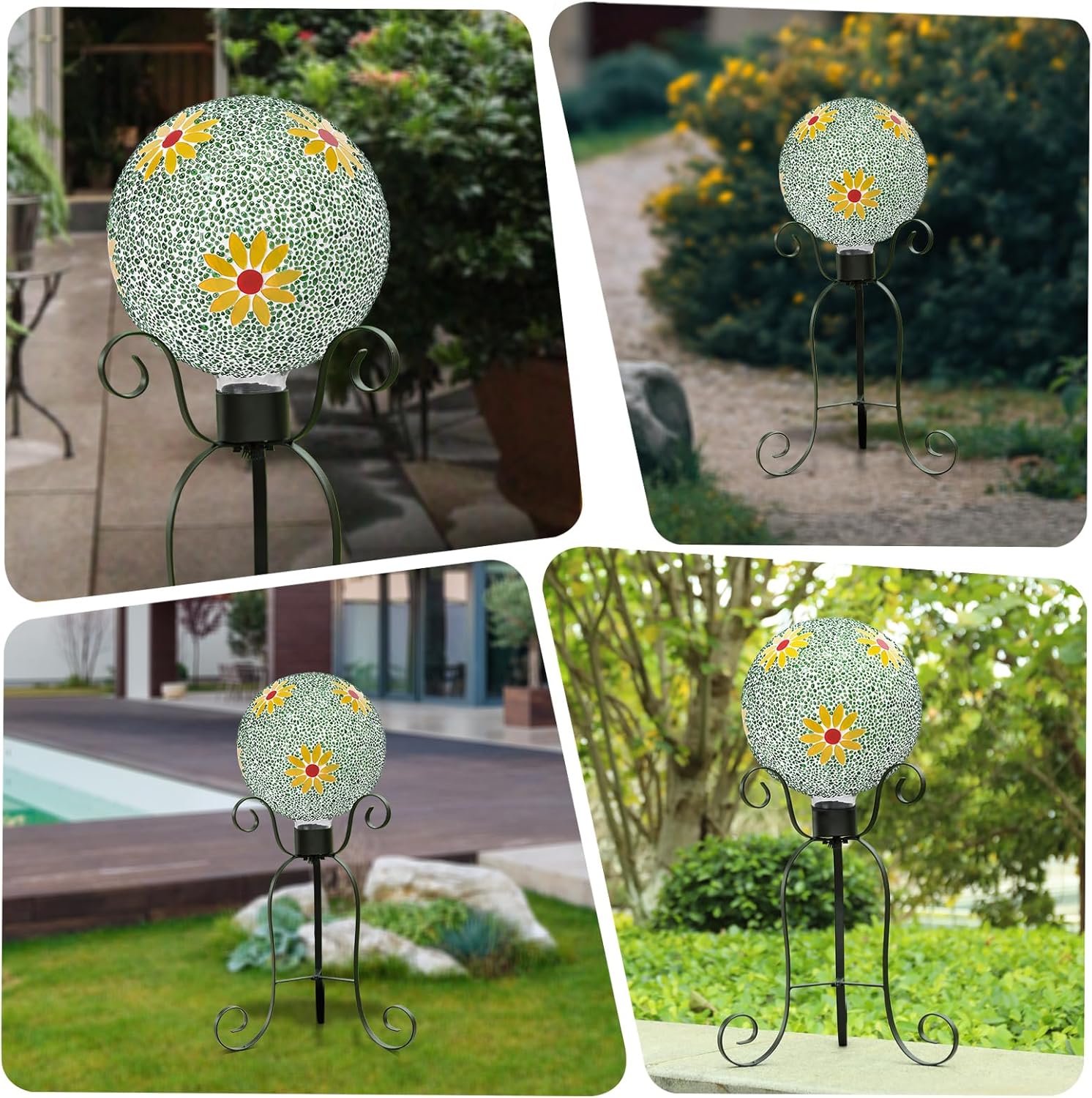 VCUTEKA Gazing Ball, 8" Glass Gazing Balls Sphere for Garden Lawn Outdoor Ornament Yard Decorative, Daisy