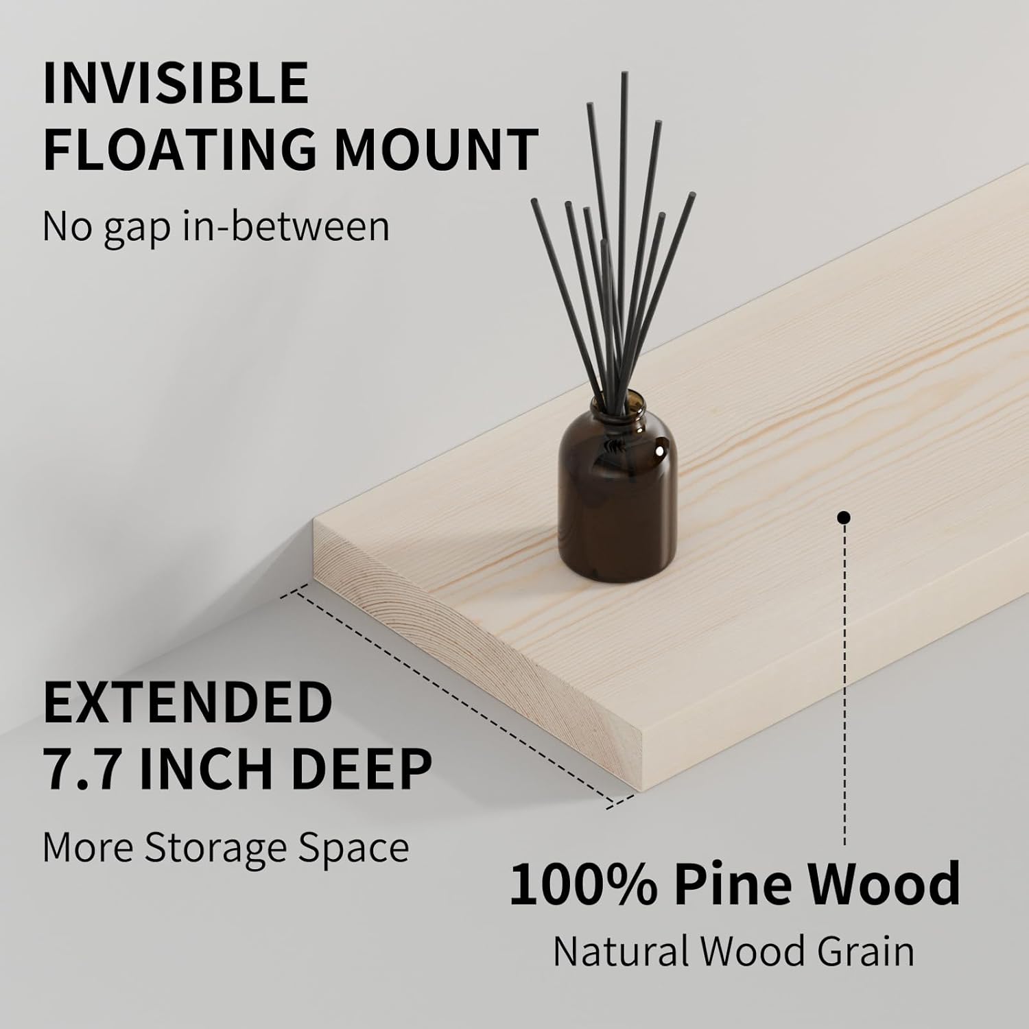 - Deep Floating Shelves: Crafted with extra-wide (8 inches) and thick (1.4 inches) wood, they are deeper and sturdier than regular floating shelves; Perfect for displaying books, plants, and decorative items, they make your space more organized