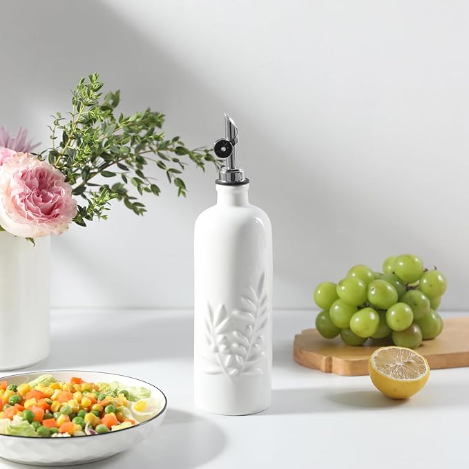 - Versatile for Kitchen & Practical- Ideal for storing and dispensing olive oil, vinegar, syrups, and more. Its 18 oz (530 ml) size is perfect for home kitchens, restaurants, cafes, or as a stylish gift. Durable, high-temperature-fired ceramic ensures lasting use.