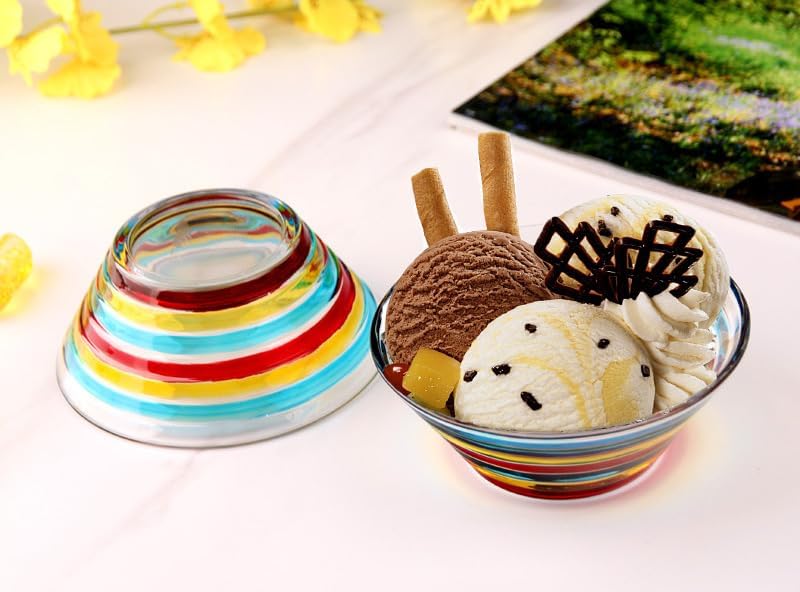 Decorative Bowl Stained Glass Candy Dishes, Set of 2, Hand Painted Colorful Glass Bowl for Snack, Dessert 6.75 oz