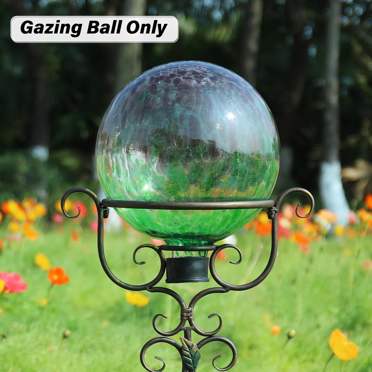 - This gorgeous garden globe features a stemmed bottom with a rubber cap, so you can easily place it on a stand of your choice for display(stand excluded)