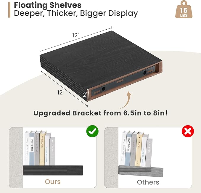- Sturdy and Effortless Assembly- Includes all necessary hardware to make these floating shelves easy to assemble. We also provide you with detailed install instructions for you to install the shelves in a few minutes.