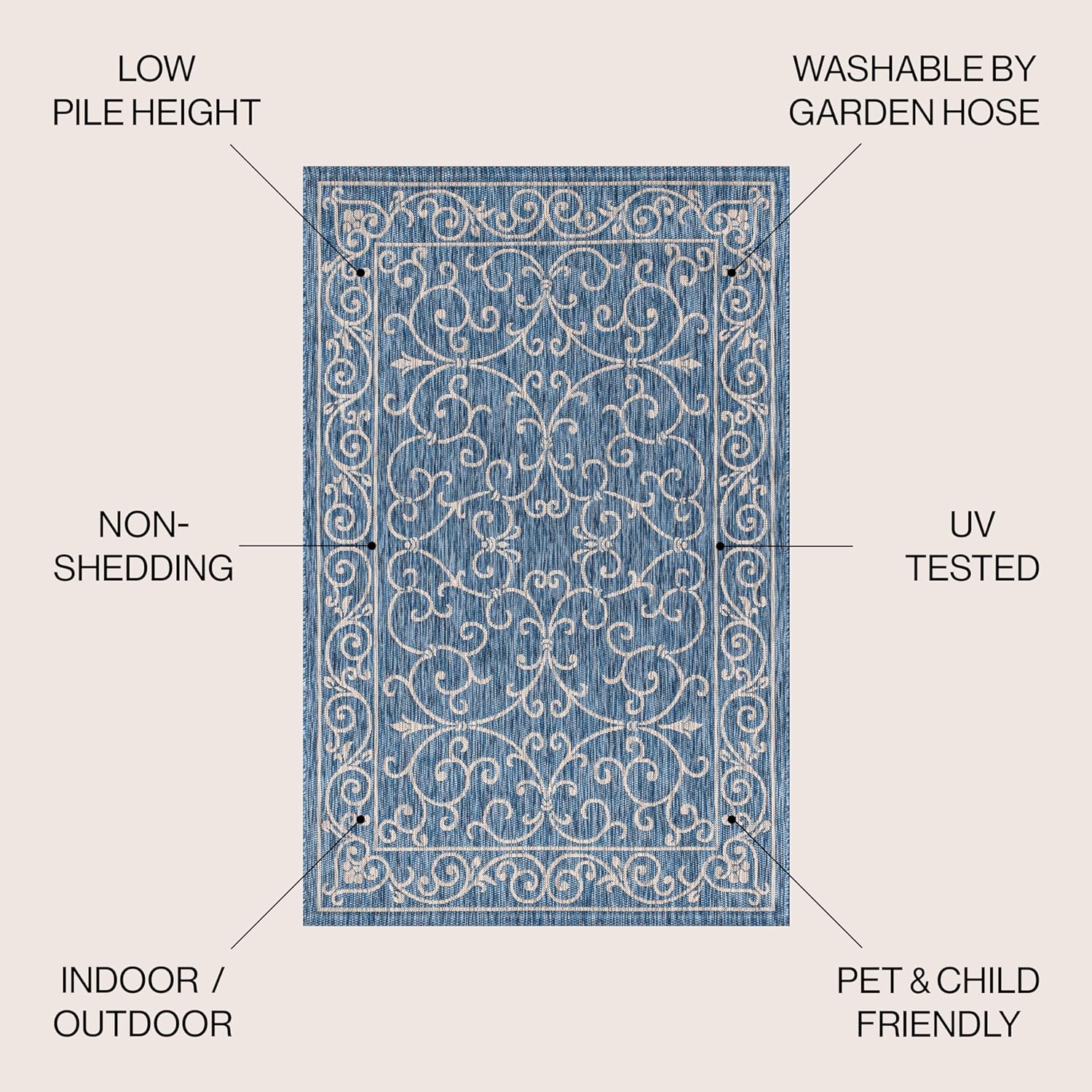 JONATHAN Y Vintage Filigree Indoor Outdoor Square Area Rug 4X4 Navy/Gray, Charleston Textured Weave for Backyard, Patio, Porch, Easy-Cleaning, High Traffic, Pet-Friendly, Non-Shedding (SMB106D-4SQ)