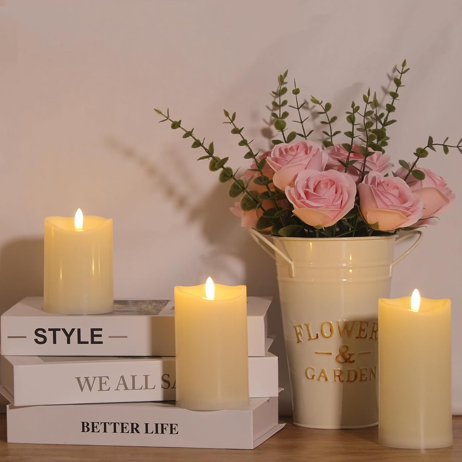 - Realistic Appearance: Unlike ordinary candles, ours feature a 3D wick ( not moving flame ) that creates a lifelike flicker, bringing the warmth of a real flame without the risk. The LED pillar candles have irregular edges, mimicking how real candles burn unevenly, adding to their authentic beauty. When lit, these candles offer stunning visuals from different angles. Additional, with no dripping wax or open flame, ensuring safe for children and pets