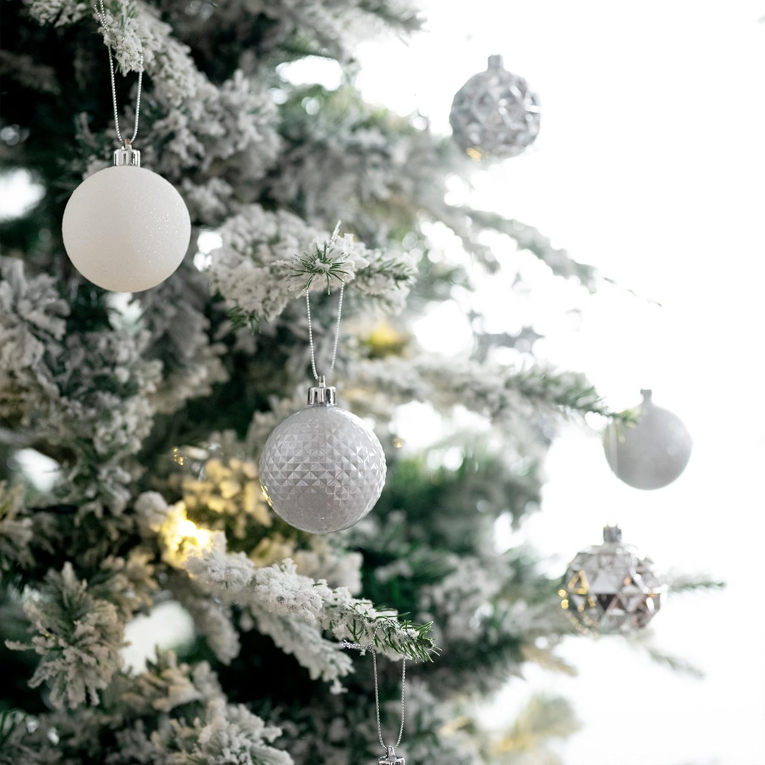 Valery Madelyn Christmas Tree Decorations Ornament Set for Fall Halloween, 50ct 2 Inches White and Silver Shatterproof Christmas Ball Ornaments Hanging Xmas Holiday Party Decor