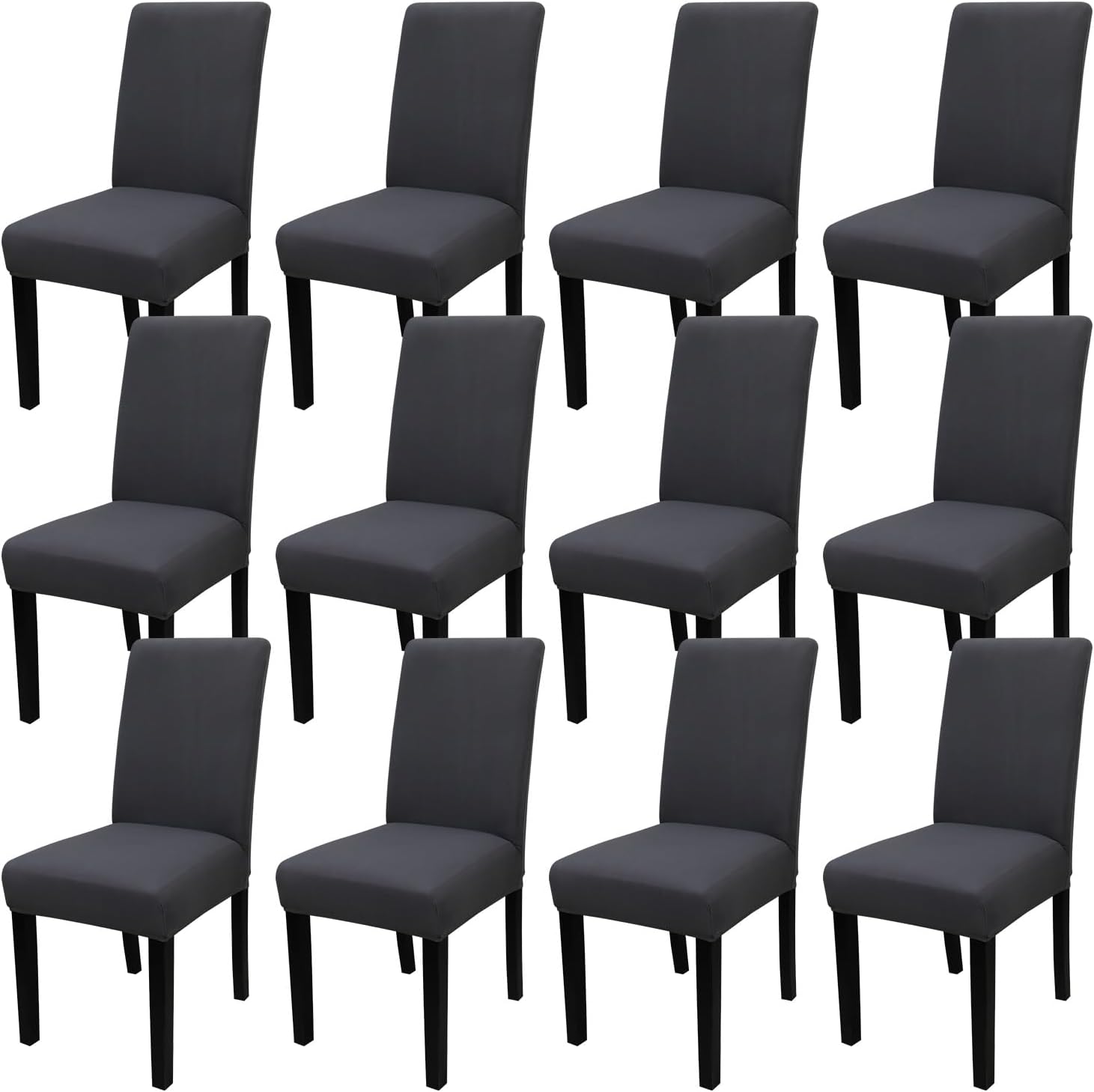 JQinHome Dining Room Chair Covers Set of 12, High Stretch Chair Slipcover Removable Washable Chair Seat Protector Cover for Home Party Hotel Wedding Ceremony (Grey)