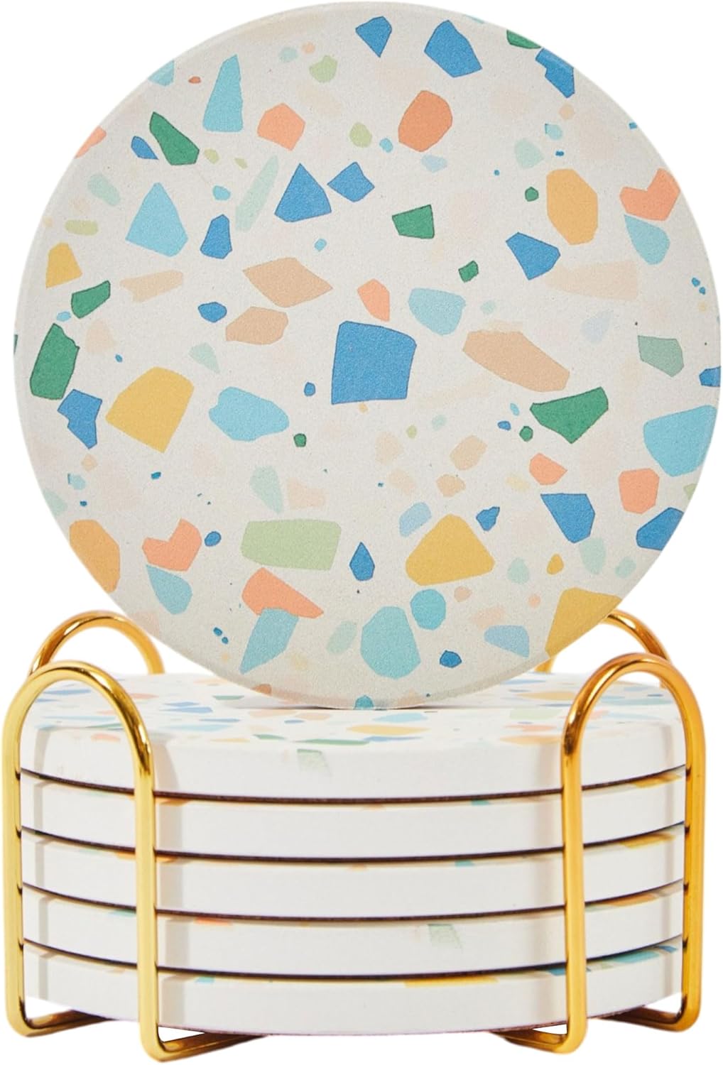 Absorbent Coaster Set of 6 with Holder, Drink Coasters for Coffee Table, Kitchen, Home Decor, Cute Ceramic Round Coasters, Alternative to Silicone, Cork or Glass Coaster (Color Pop)