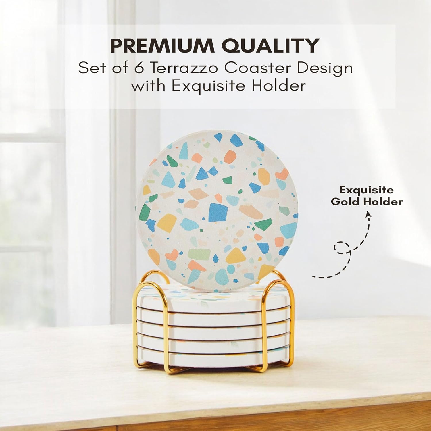 - Minimalism & Elegance: This coasters with holder comes with a gold metal holder for easy storage and 6 marble drink coaster to suit all centerpiece table decor. Our water absorbing coasters are available in green, black, navy blue, white coasters.