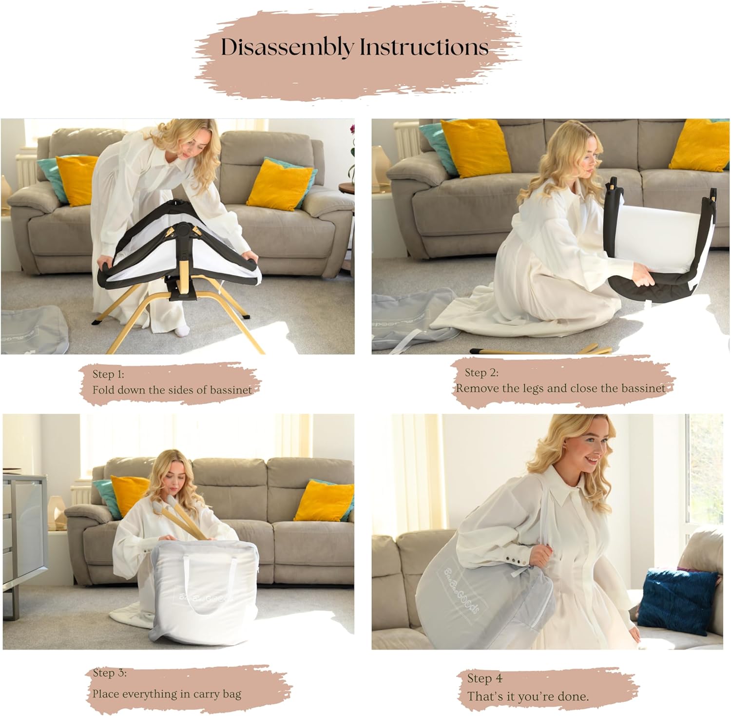 - Portable & Easy To Carry: Our bedside bassinet for baby can easily be assembled and folded in a matter of minutes and it is lightweight which allows you to smoothly move it around your home. Our compact design allows you to easily fold it up and take it with you on the go in our carrybag