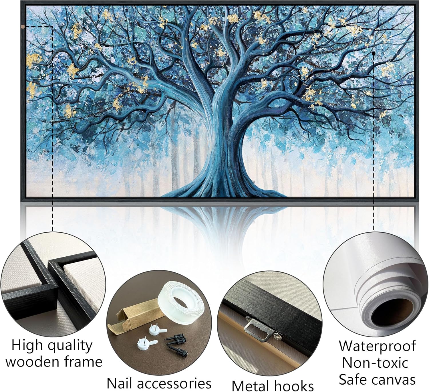 - Tree of Life Wall Art: Printed on high-definition canvas with eco-friendly inks and finished with hand-applied gold foil, this artwork is fade-resistant, waterproof, and UV-resistant.