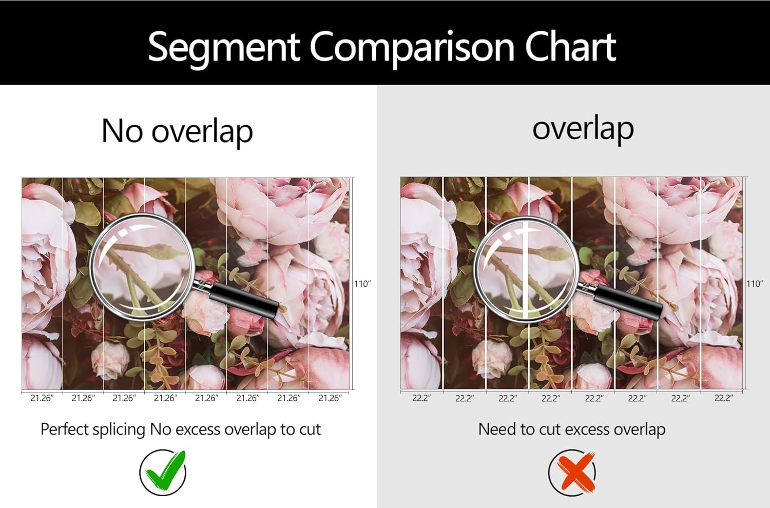 - Mural Size: The total size of this mural wallpaper is 170" x 110" / 432CM x 280CM (W x H), cut into 8 pieces, each measuring 21.26" x 110", for easy installation.