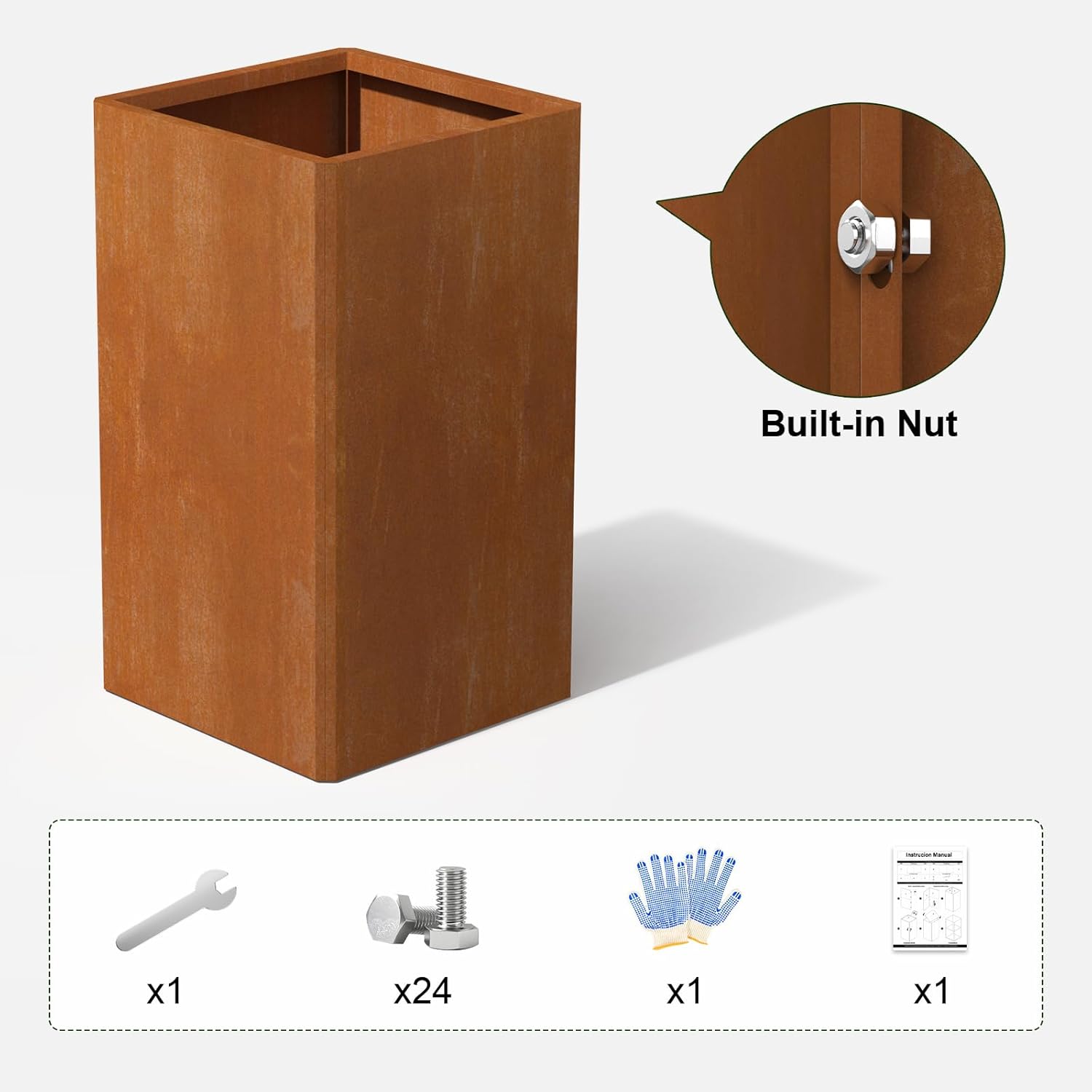 - 🧰 Effortless Tall Square Planter Assembly: Full kit (24 screws/wrench/gloves/manual) + 45° angle splicing. Wrapped edges prevent cuts during setup—DIY-friendly heavy-duty build for elevated designs!