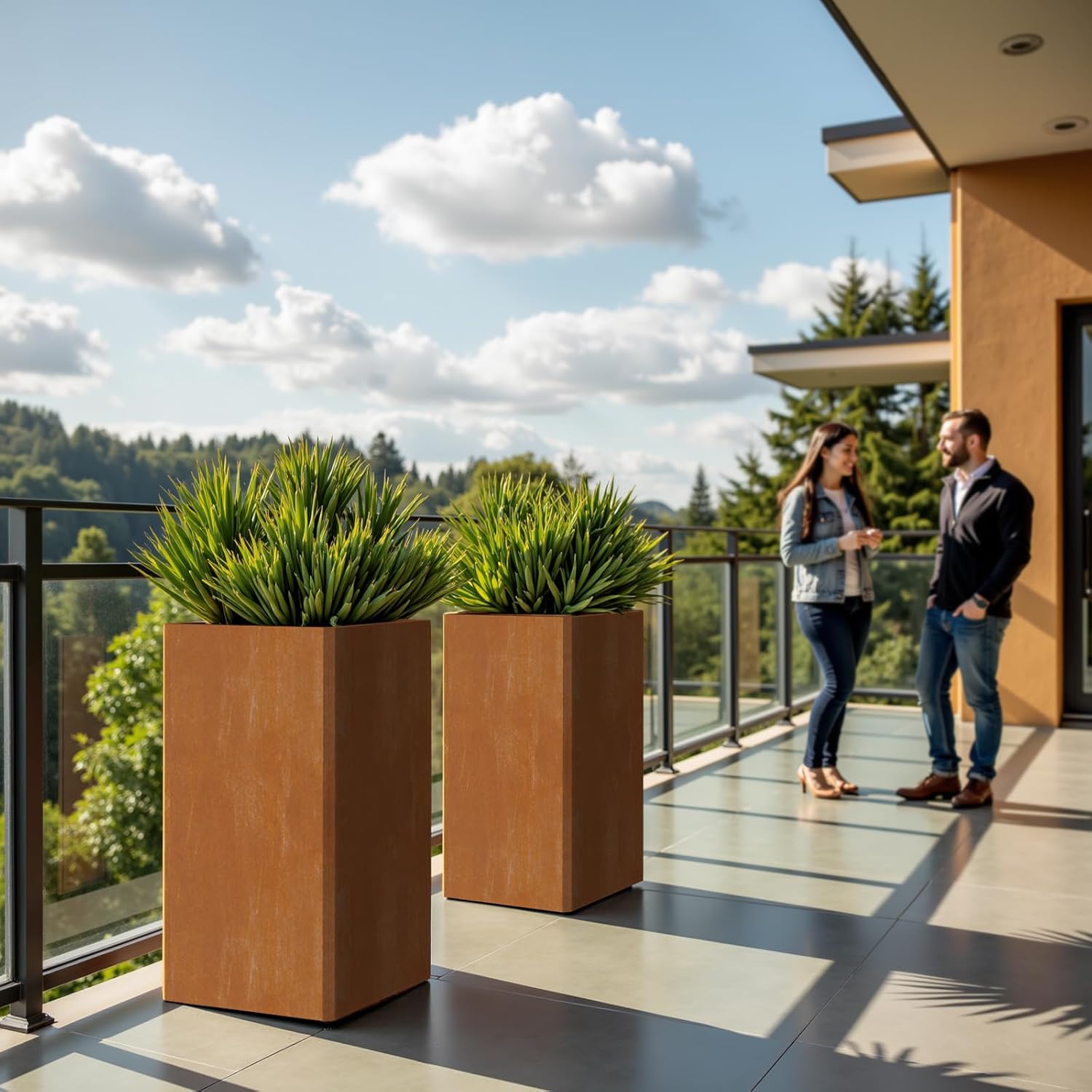 - ♻️ Eco-Height Landscape Transformation: Large outdoor planter made with metal steel withstands elements. Sustainable rust evolves elegantly—transforms porches/offices into instant vertical gardens!