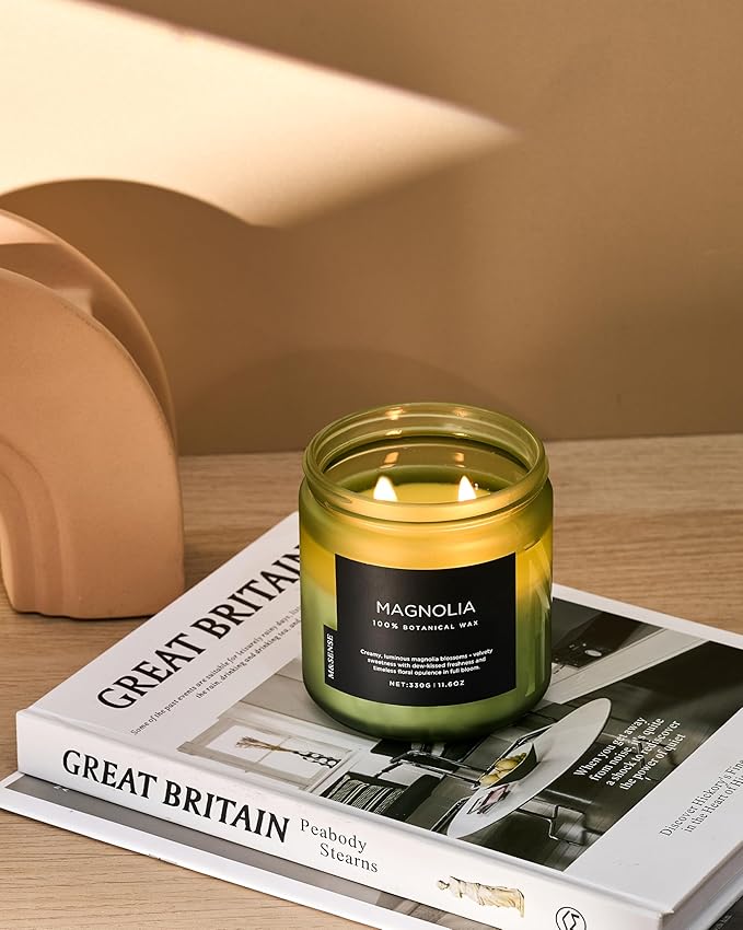 M&SENSE Magnolia Jasmine Spring Scented Candle, 11.6oz 70 Hours Long Lasting Clean Non Toxic All Natural Soy Wax Candle for Relaxing & Stress Relief, 2 Wick Romantic Fragrance Gifts for Home Decor
