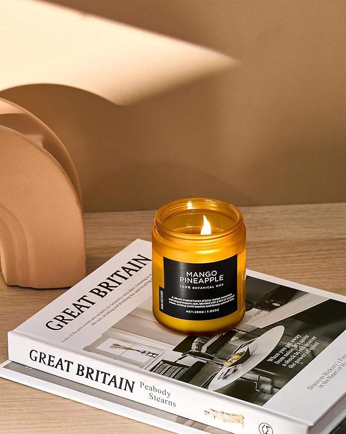 M&SENSE Mango Pineapple Tropical Scented Candle, 7.05oz Non Toxic Natural Soy Wax 50 Hours Long Lasting Burn Fruit Scent Summer Gifts for Housewarming, 2 Wick Aromatherapy Candle for Women Men