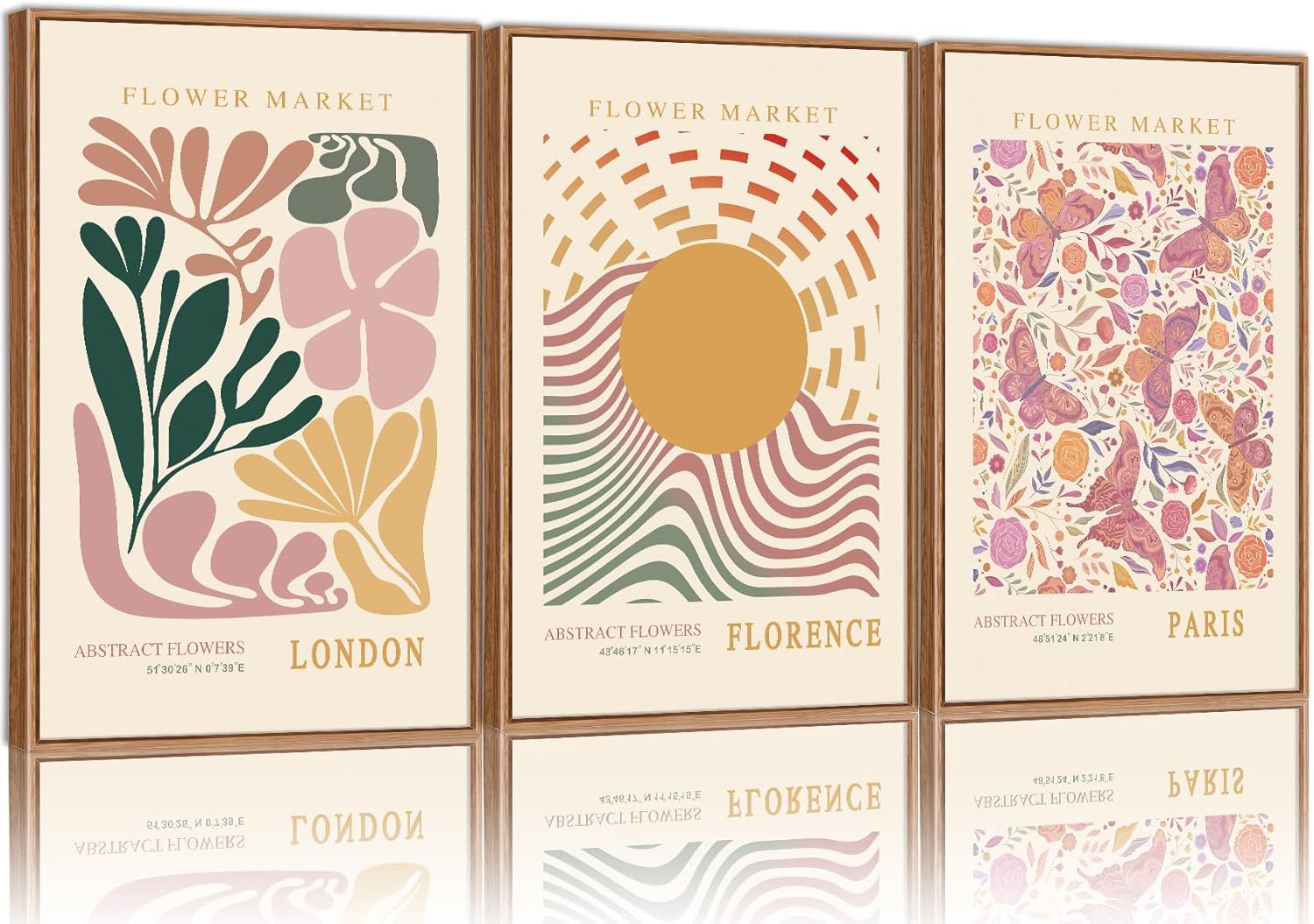 Tinonedraw Boho Flower Market Framed Canvas Wall Art Set, Pink Beige Cute Butterfly Wall Decor, Colorful Abstract Floral Wall Painting, Modern Matisse Art Print for Girls Room Bedroom Office Nursery 16"x24"x3