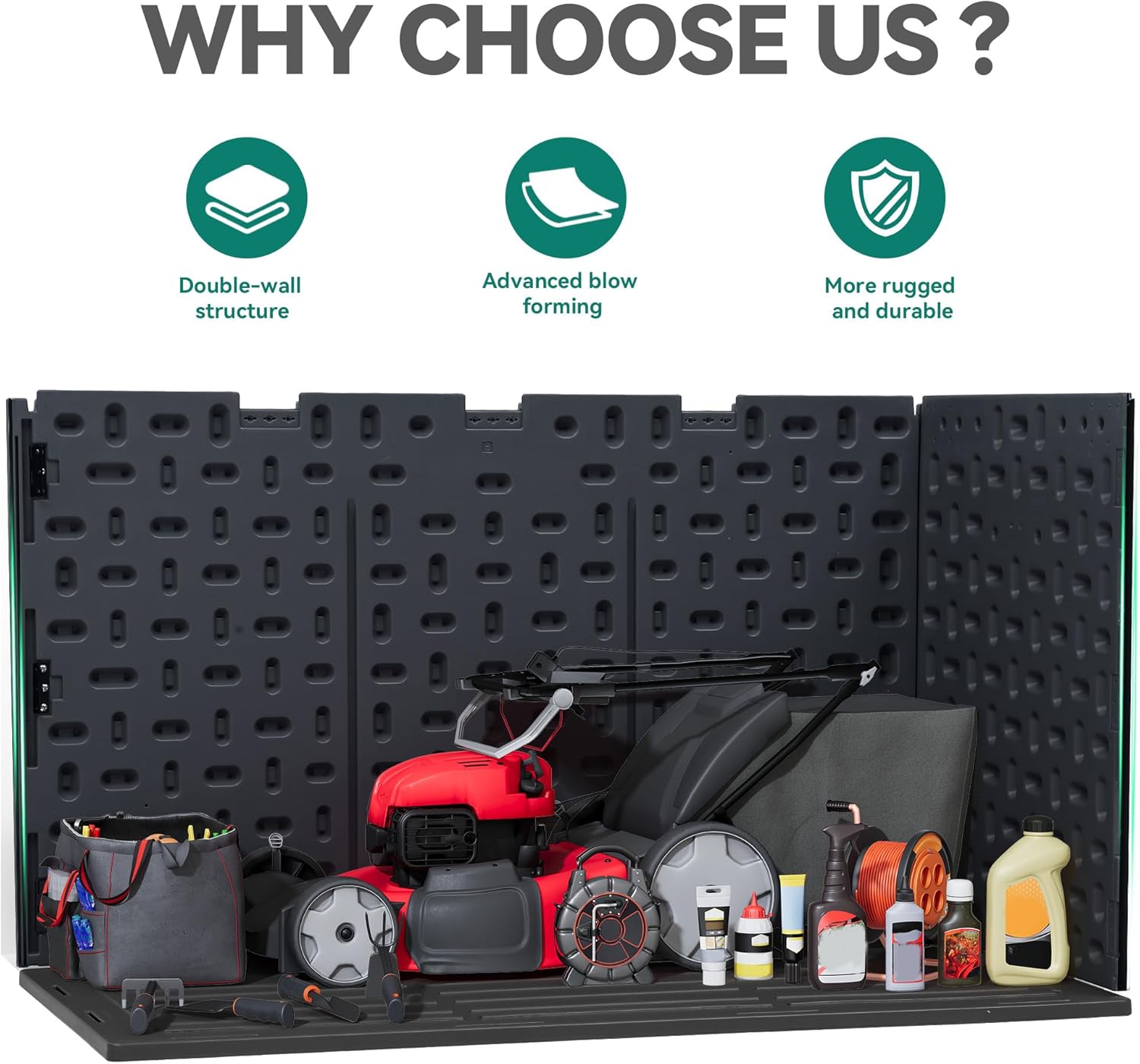 - Easy Setup: Approximately 30 minutes are needed to assemble the lockable storage box; Ensure all components are properly secured or tightened to maintain waterproofing and structural integrity.NOTE: This deck box features a stylish two-tone color design. The Grayish-Black back and right panels may appear Bluish-Gray under sunlight, while the other panels are Black