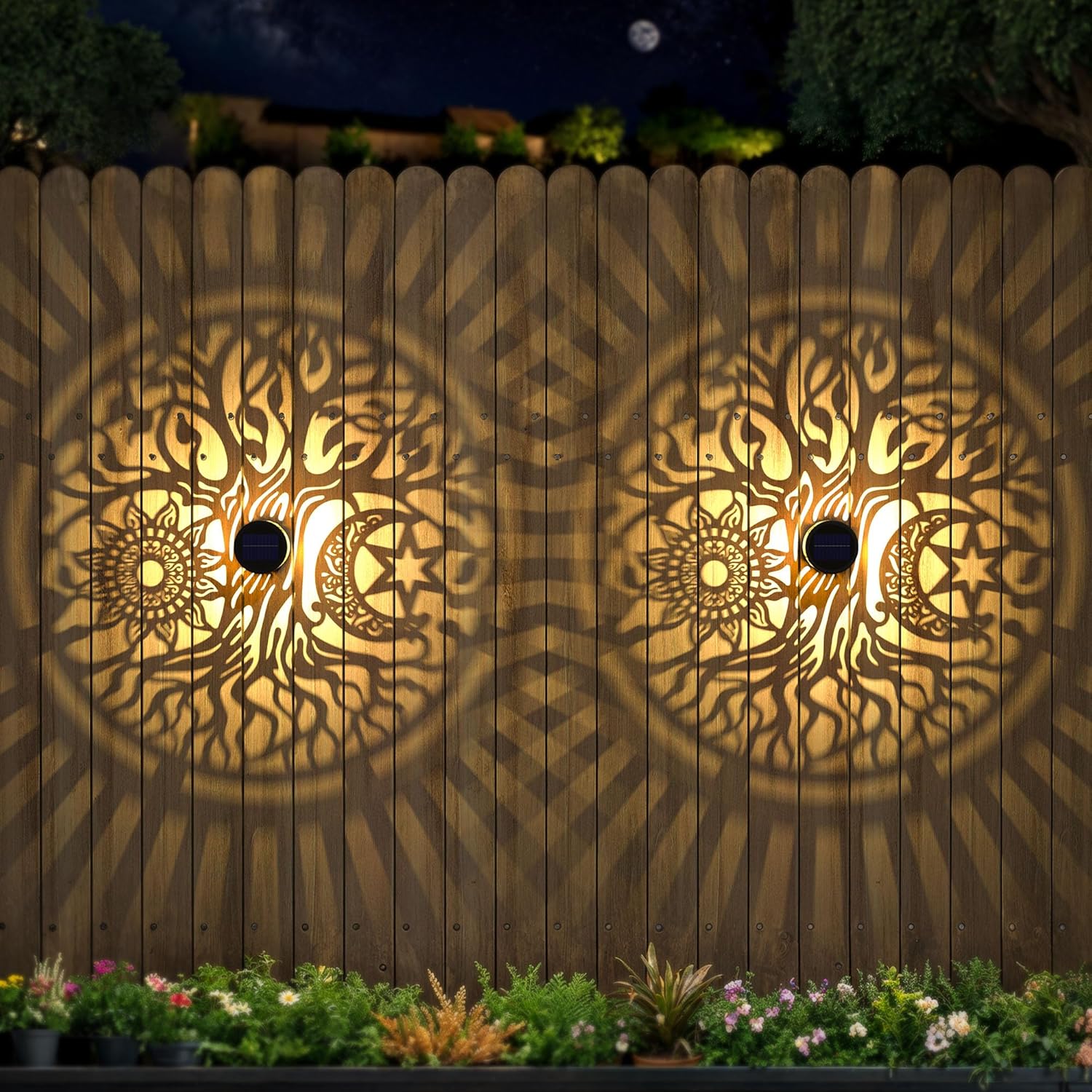 - Good Decoration: 18 lumens of warm yellow light. The large fence solar lights can project a unique and beautiful tree of life pattern. In a dim environment, the solar lights can illuminate a corner of the fence or the wall and create a beautiful and warm atmosphere. They are very suitable as holiday decorations and gifts for relatives and friends.