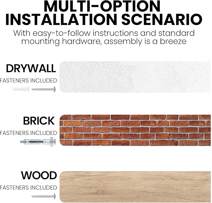 - Seamless Structural Ingenuity: Engineered for the effortless mounting of floating shelves, the integrated heavy-duty bracket system pairs with reinforced metal anchors to securely hold up to 50–70 lbs. A streamlined, bracket-free façade combined with anti-slide screws ensures polished aesthetics without compromising stability