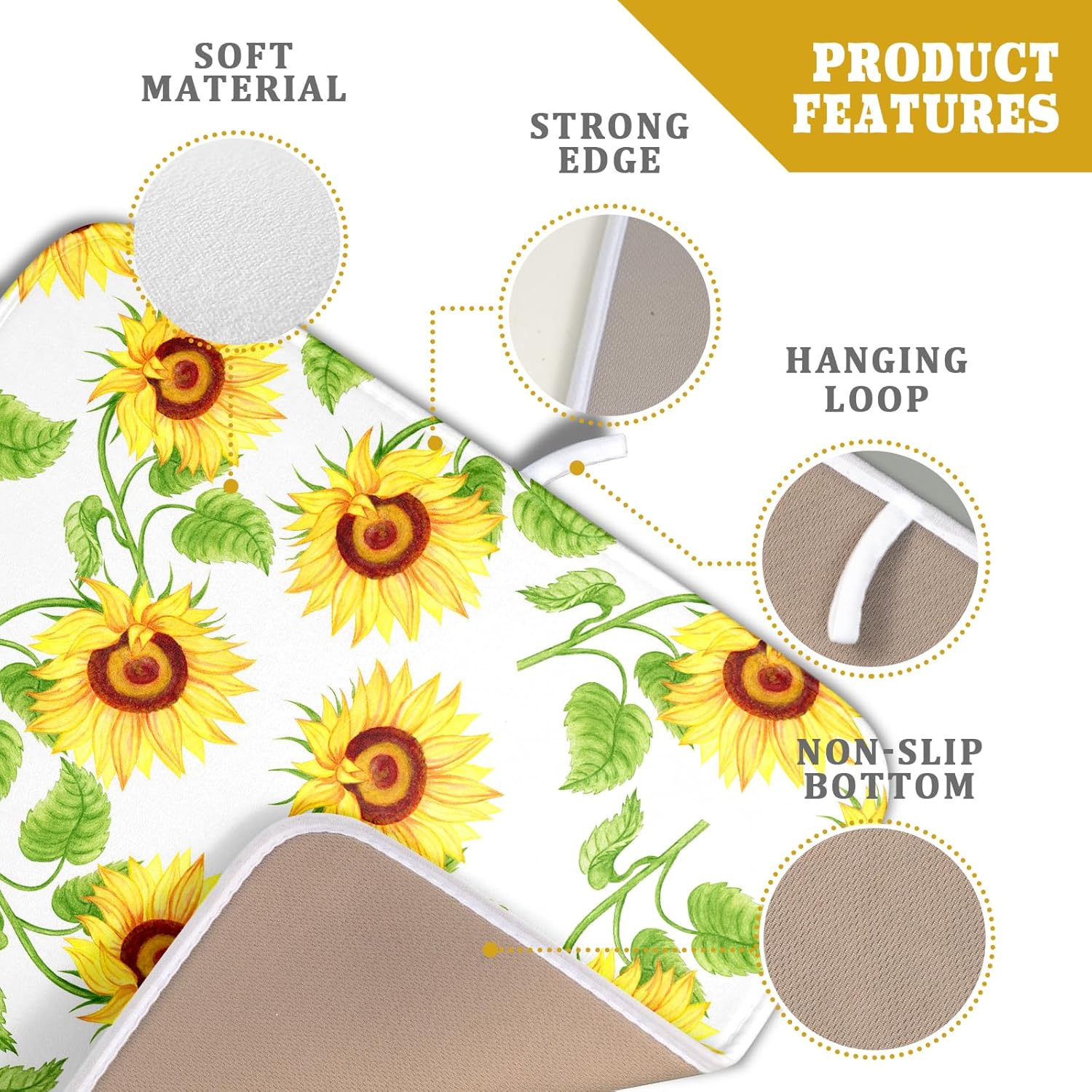 - 【Perfect Size】This sunflower dish drying mat measures 16 x 18 Inch. Fits most kitchen countertops,while providing a smart,sharp look.