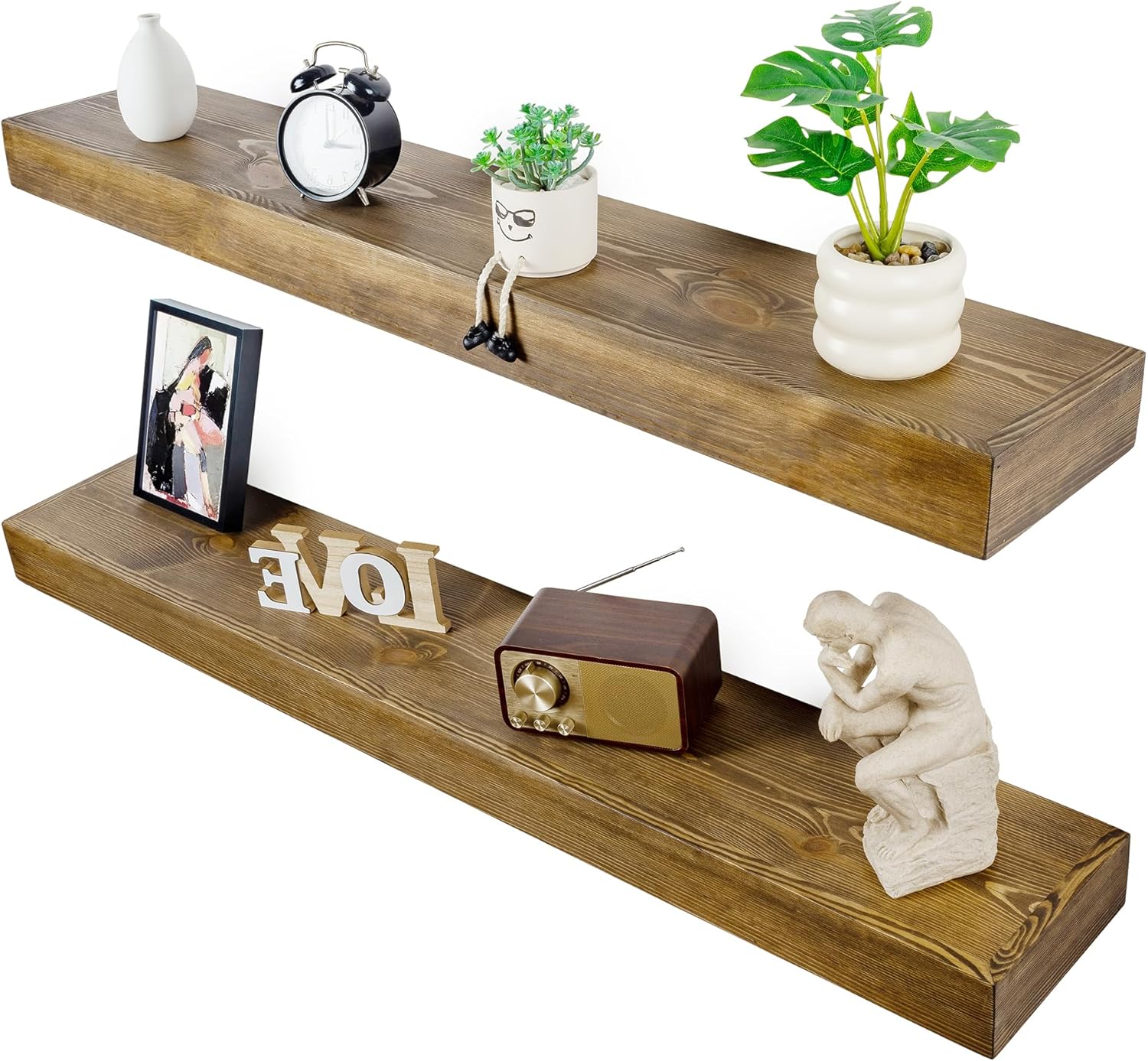 - Stylish and Versatile Storage Solution: Upgrade your living spaces with these 3'' thick rustic wood shelves, perfect for kitchens, bedrooms, bathrooms, living rooms, or offices. They combine rustic charm with modern functionality, serving as both decorative and practical storage.