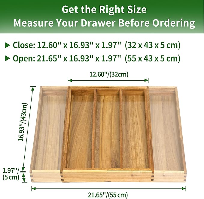 - STURDY CONSTRUCTION: Solid wooden construction prevents sliding and movement within drawers while protecting your utensils