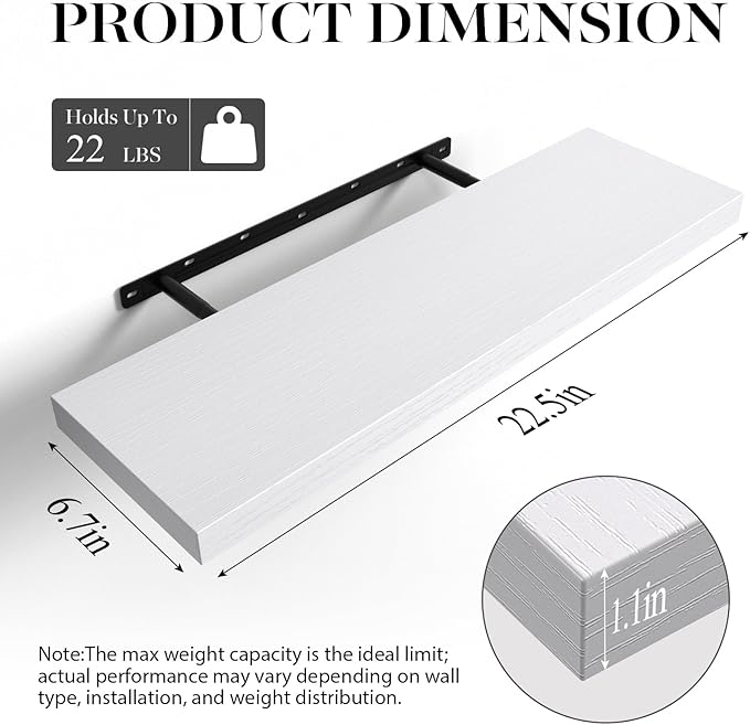 BAYKA Floating Shelves for Wall, 22.5 inches Wall Mounted Rustic Wood Shelves for Bathroom, Bedroom, Living Room, Floating Shelves for Books/Storage/Decor (White,Set of 3)
