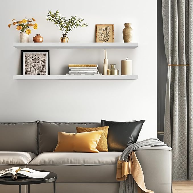 BAYKA Floating Shelves, 48 inches Long Heavy Duty Wall Mounted Rustic Wood Shelves for Bathroom, Bedroom, Living Room, Kitchen, Office, Hanging Shelf for Books/Storage/Decor(White,Set of 2)