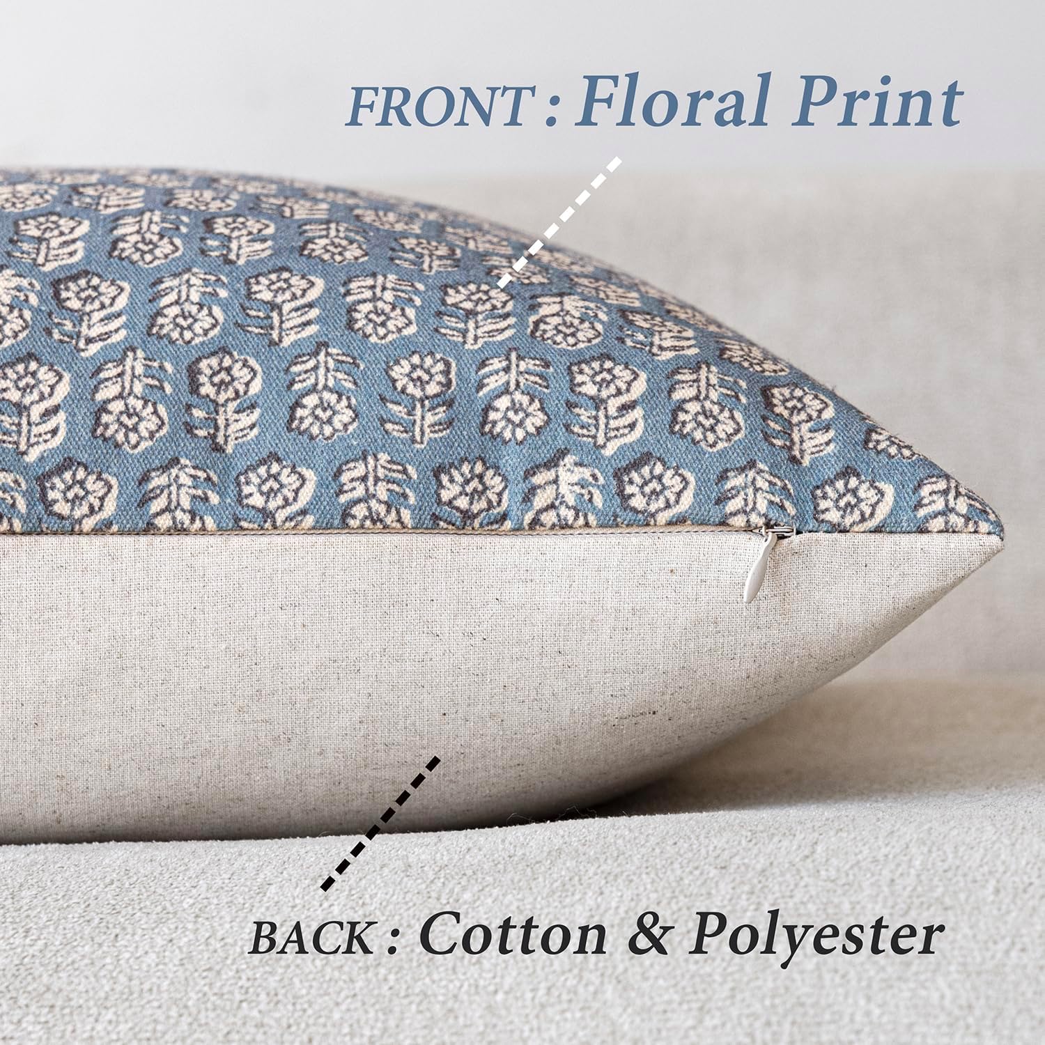 Foindtower Set of 2 Decorative Neutral Body Lumbar Throw Pillow Covers Vintage Accent Farmhouse Cushion Covers Floral Home Decor for Sofa Couch Chair Bedroom Living Room Outdoor,14×36 Inch,Dusty Blue