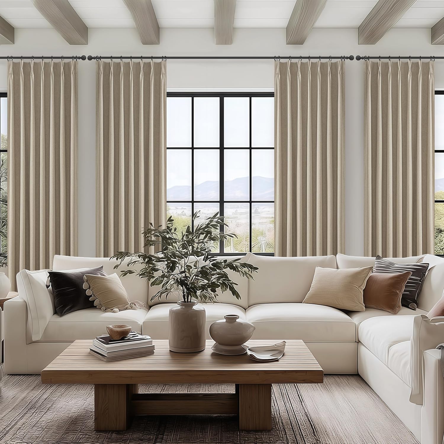 - Pinch Pleats Design:Each panel has 7 pleats.linen draperies are crafted from blended fabric(30%linen,70%polyester),drapes well and not easy-wrinkle.Suitable for various styles:modern,farmhouse,boho,neutral,bedroom,living room,nursery,sliding door,etc.