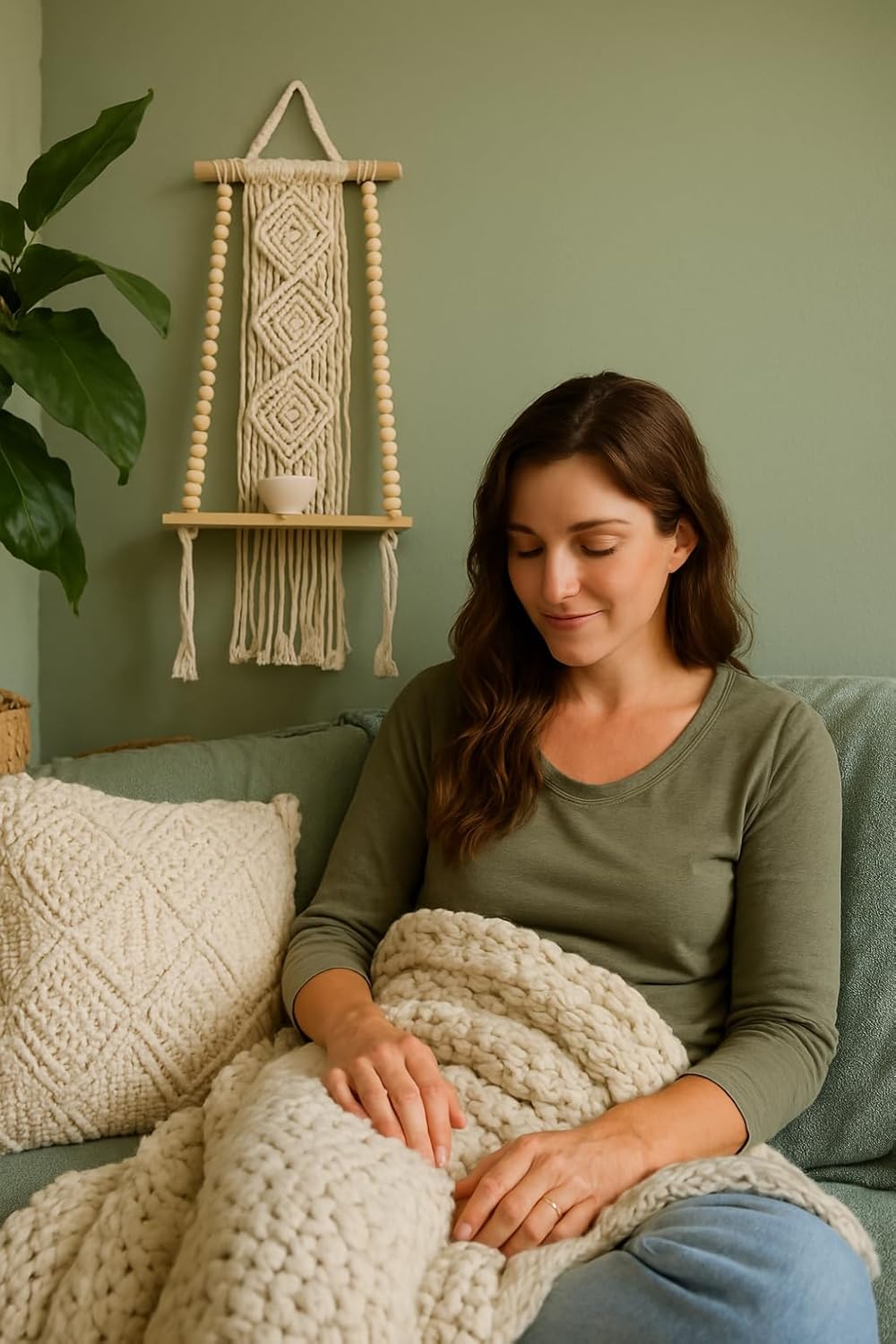 - Sturdy & Reliable Support: Made with strong cotton macrame string & a durable wooden shelf, our tapestry wall hanging helps you to add charm to any cozy space; this living room wall art can securely hold plants & more