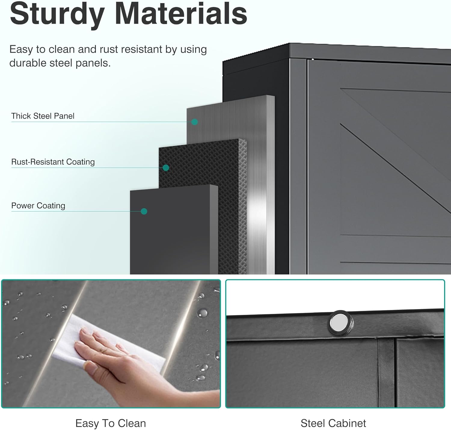 - 【Sturdy,Durable and Safe】: Made of powder-coated steel plate, this black cabinet is sturdy,durable and easy to clean.Load capacity is up to 120lbs each shelf. The included anti-tip kit helps secure the pantry cabinets to the wall to give you a safer living space.
