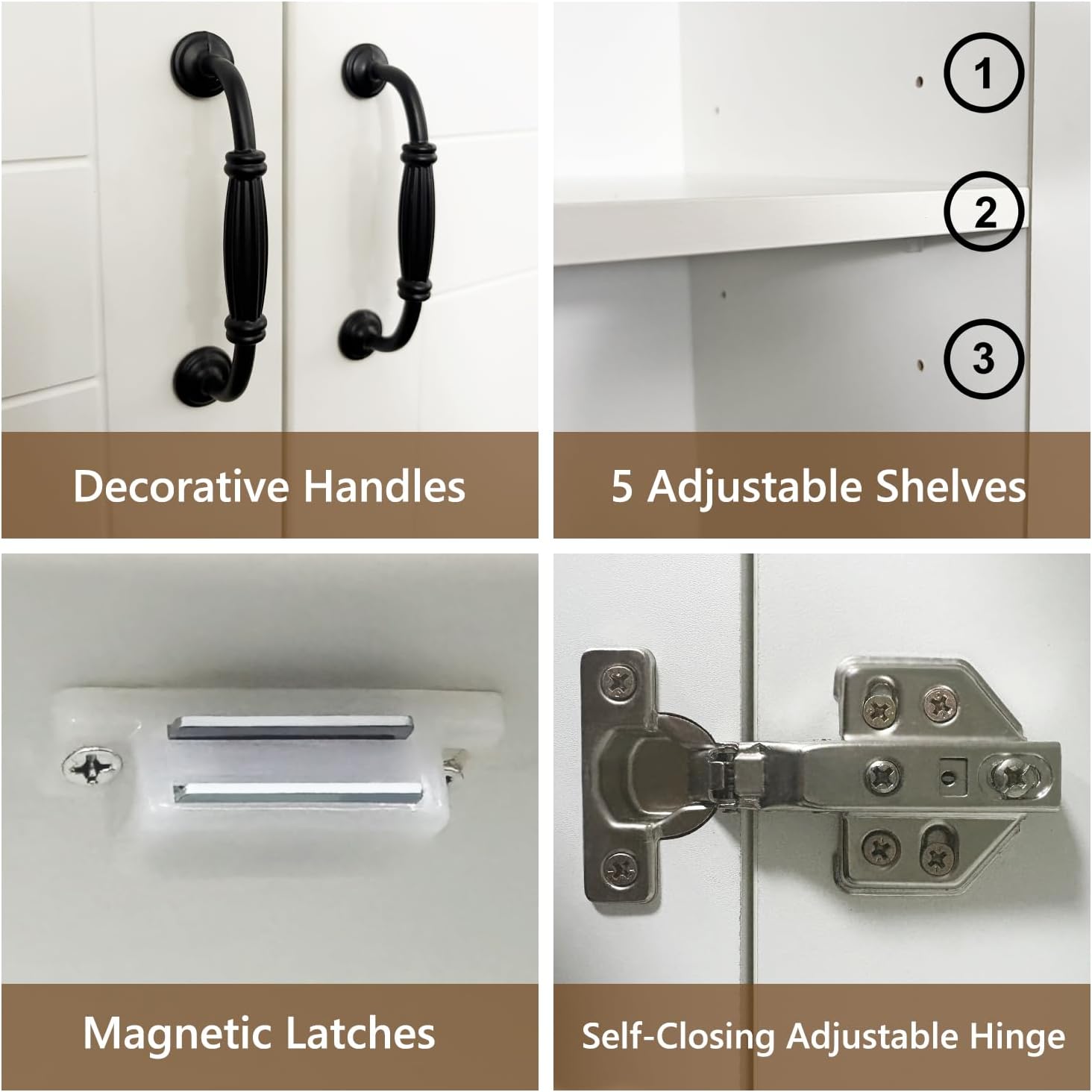 Storage Cabinet/Pantry cabinets, Soft White Finish, 71" Tall Wood Cupboard with 2 Door and 3 Adjustable Shelves for Kitchen, Dining Room, Living Room, Bathroom (Style 1)