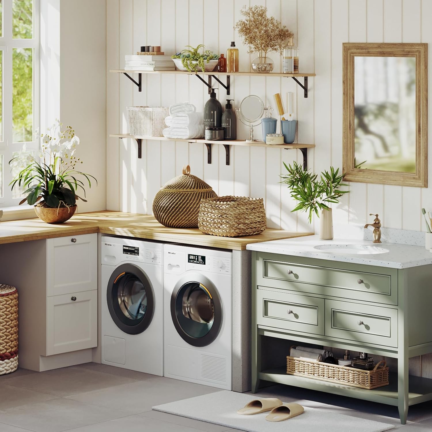 - 【Wide Application】The shelves for wall storage is gospel of small family to enjoy the tranquility of home. The large floating shelves allow you to store books, games, decorations, plants, towels, photos, etc. Creating extra storage in living room, bathroom, bedroom, closet, balcony, study, kitchen, laundry, bar area, pantry and office, etc
