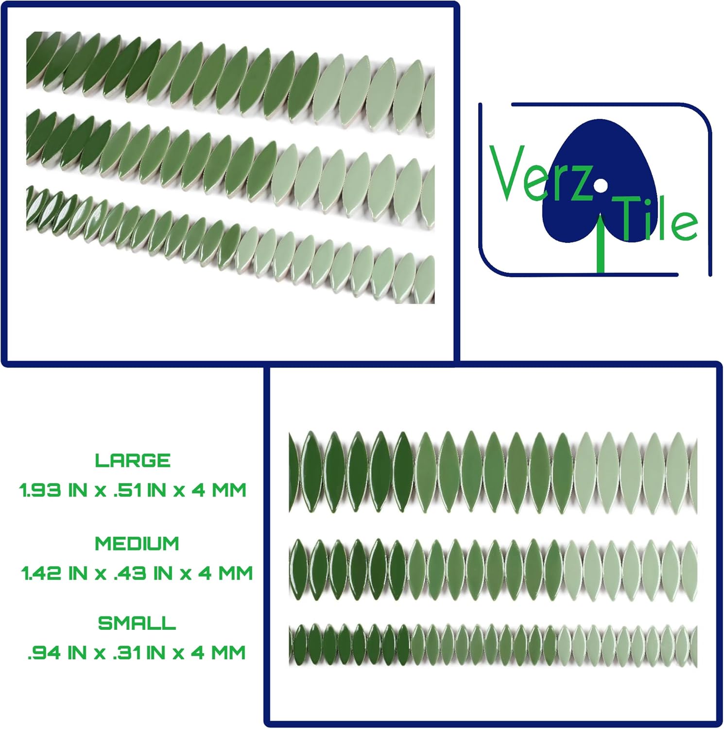 VerzTile Mosaic Tiles for Crafts - Petal Shaped Ceramic Tile Craft Hobbies & Art Projects 39 Color Options Endless Creativity DIY Design (Dark Green Mix)