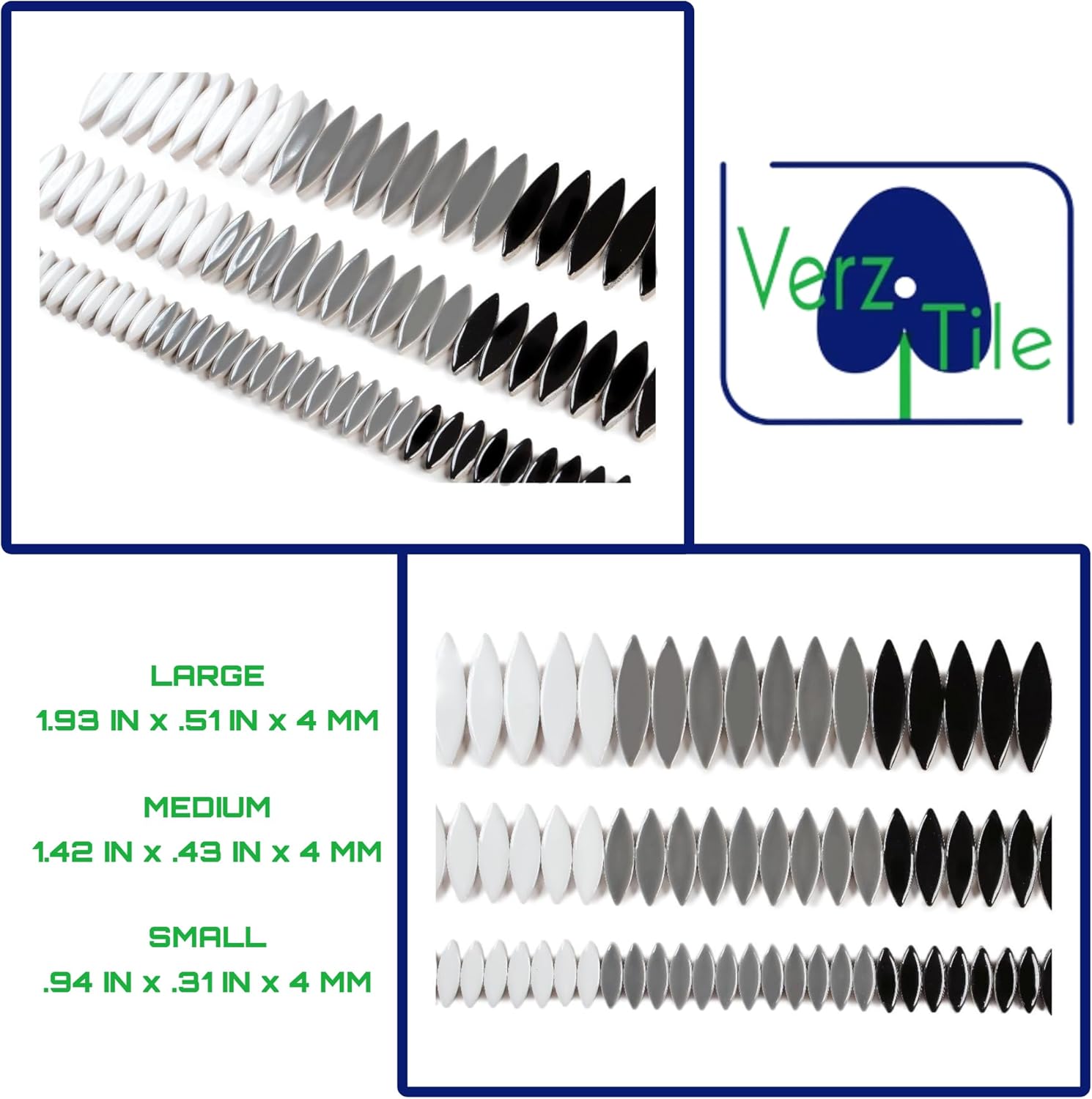 VerzTile Mosaic Tiles for Crafts - Petal Shaped Ceramic Tile Craft Hobbies & Art Projects 39 Color Options Endless Creativity DIY Design (Black White & Gray)