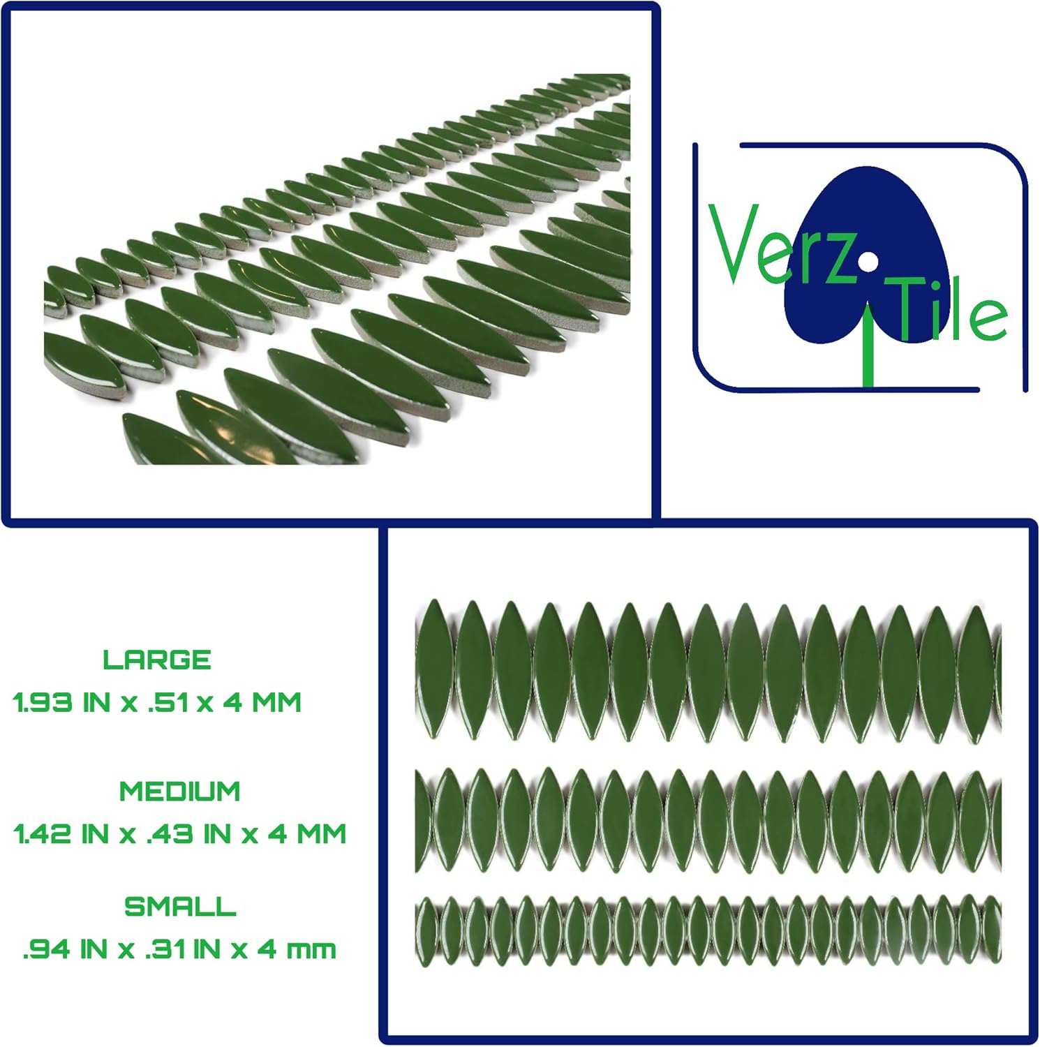 VerzTile Mosaic Tiles for Crafts - Petal Shaped Ceramic Tile Craft Hobbies & Art Projects 39 Color Options Endless Creativity DIY Design (Forest Green)