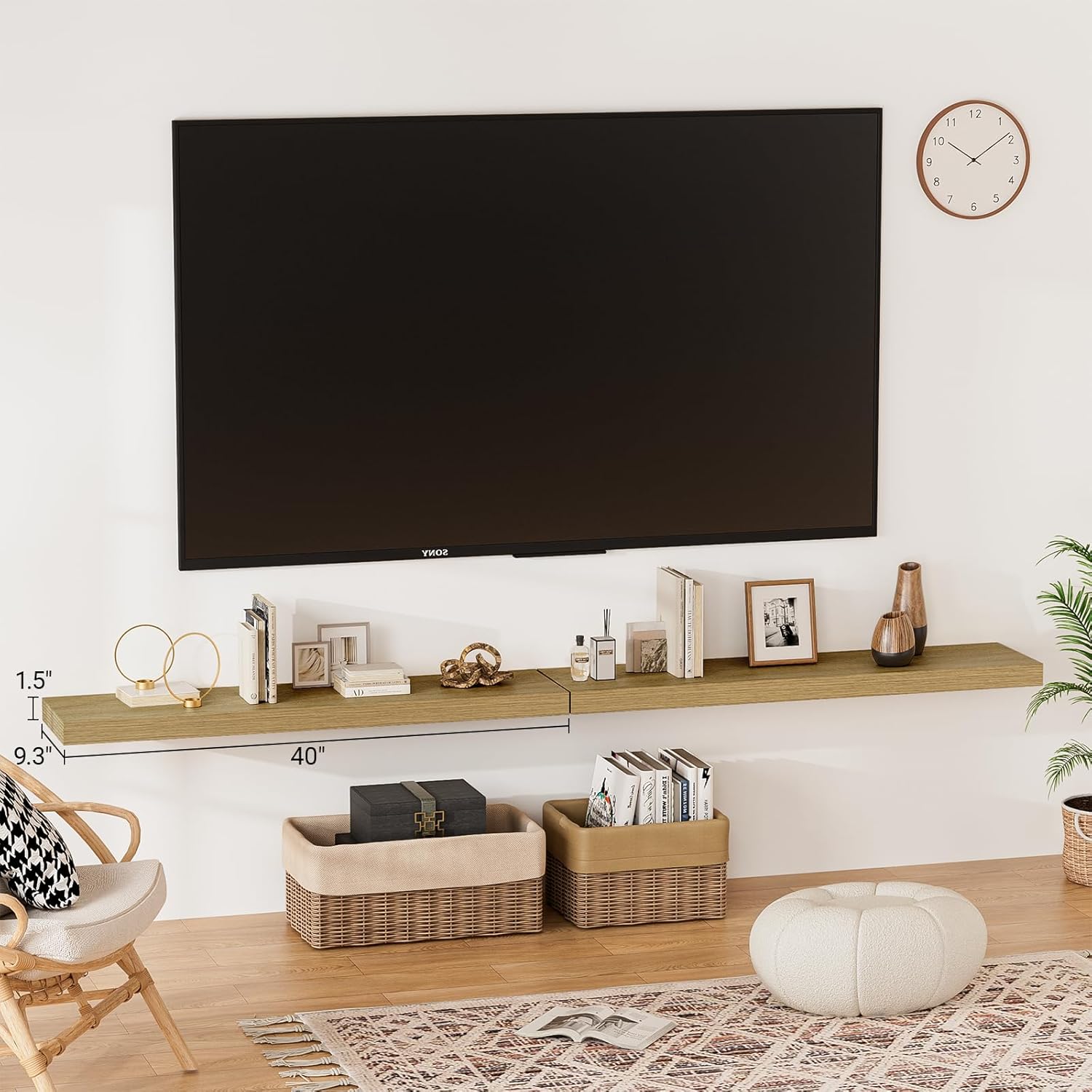 - 【Sturdy & Reliable Material】The floating shelves oak use metal brackets and screws to be firmly fixed to the wall without sagging.Our 40 inch floating shelf are made of high quality MDF material,can hold up to 55 lbs to safely place your items.