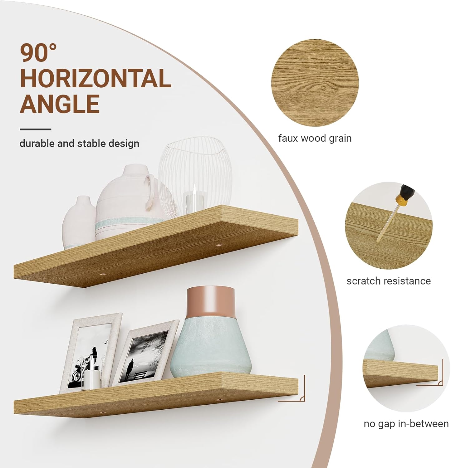 Heimlove 40 Inches Floating Shelves for Wall,9.3" Deep Oak Long Floating Shelves Set of 2,Large Display & Storage Shelf,Wall Shelf for Bathroom Bedroom Living Room Kitchen Office